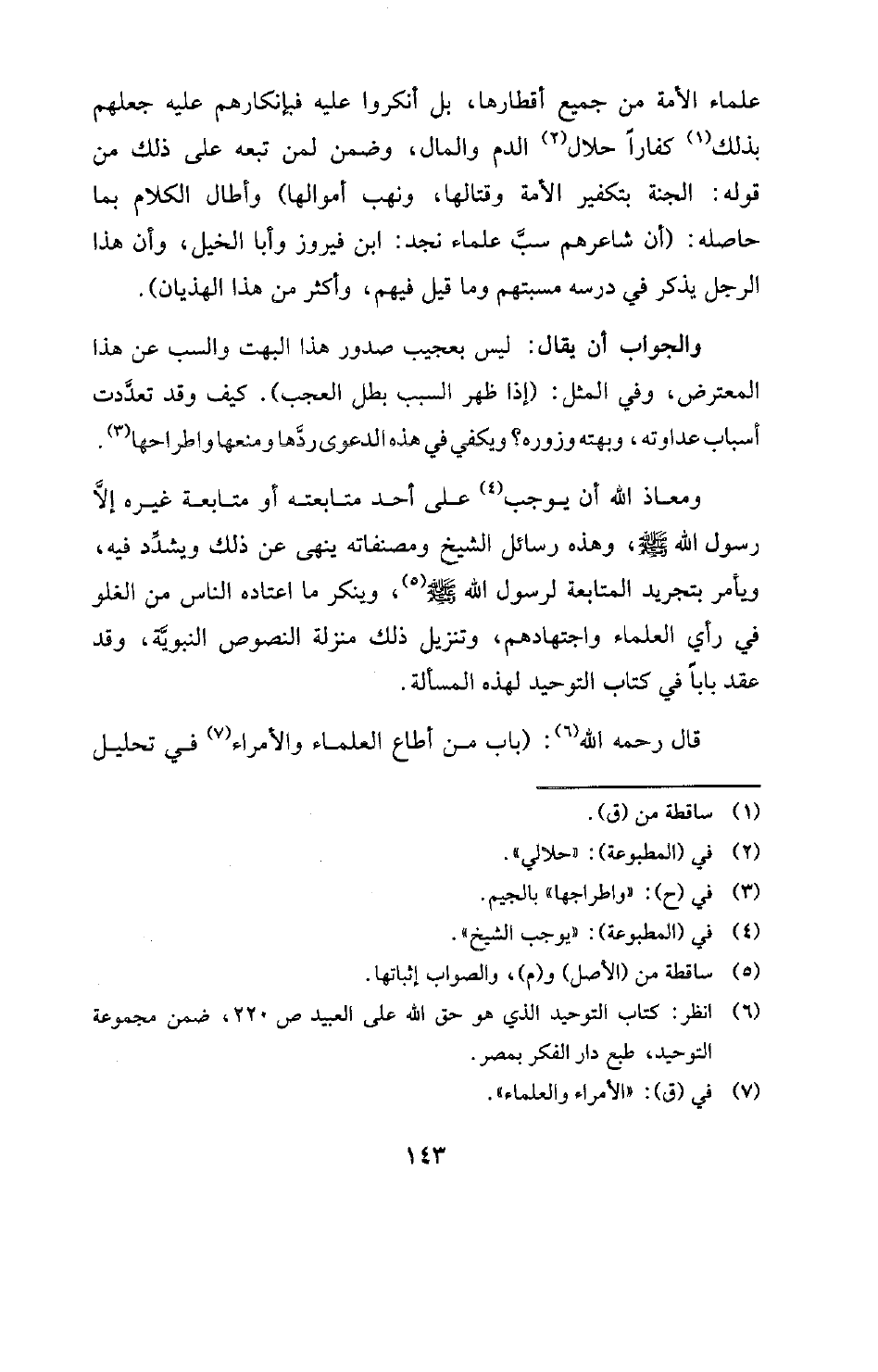 (¬6) انظر: كتاب التوحيد الذي هو حق الله على العبيد ص 220، ضمن مجموعة التوحيد، طبع دار الفكر بمصر.