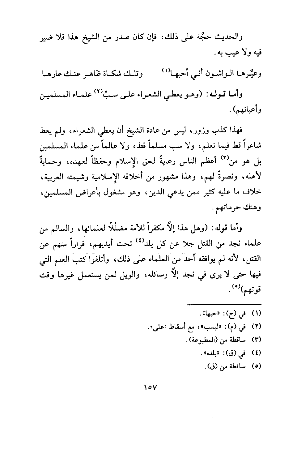 فهذا كذب وزور، ليس من عادة الشيخ أن يعطي الشعراء، ولم يعط شاعرا قط فيما نعلم، ولا سب مسلما قط، ولا عالما من علماء المسلمين بل هو من (¬3) أعظم الناس رعاية لحق الإسلام وحفظا لعهده، وحماية لأهله، ونصرة لهم، وهذا مشهور من أخلاقه الإسلامية وشيمته العربية، خلاف ما عليه كثير ممن يدعي الدين، وهو مشغول بأعراض المسلمين، وهتك حرماتهم.