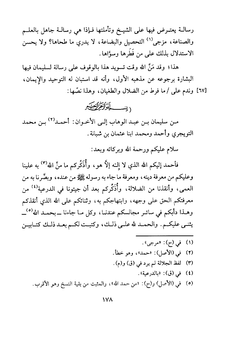 هذا؛ وقد من الله وقت تسويد هذا بالوقوف على رسالة لسليمان فيها البشارة برجوعه عن مذهبه الأول، وأنه قد استبان له التوحيد والإيمان، [67] وندم على ما فرط من الضلال والطغيان، وهذا نصها: