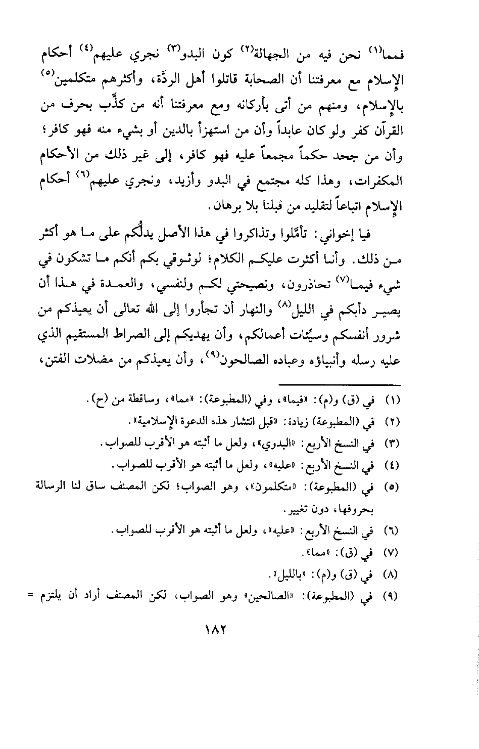 (¬9) في (المطبوعة) : "الصالحين " وهو الصواب، لكن المصنف أراد أن يلتزم الرسالة بلفظها وحروفها دون تغيير ولا تصويب لأخطائها.