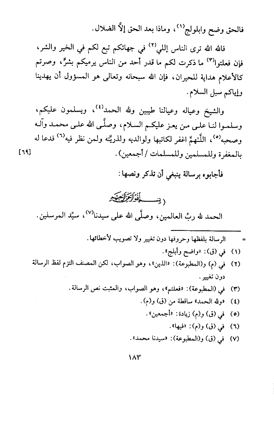 (¬2) في (م) و (المطبوعة) : "الذين"، وهو الصواب، لكن المصنف التزم لفظ الرسالة دون تغيير.