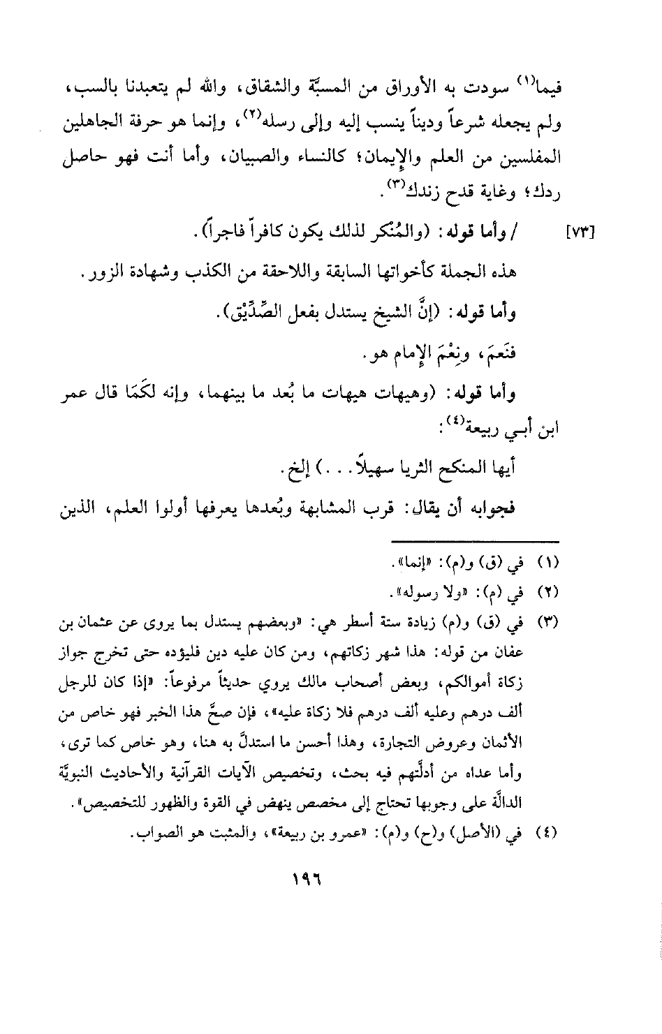 (¬3) في (ق) و (م) زيادة ستة أسطر هي: (وبعضهم يستدل بما يروى عن عثمان بن عفان من قوله: هذا شهر زكاتهم، ومن كان عليه دين فليؤده حتى تخرج جواز زكاة أموالكم، وبعض أصحاب مالك يروي حديثا مرفوعا: "إذا كان للرجل ألف درهم وعليه ألف درهم فلا زكاة عليه "، فإن صح هذا الخبر فهو خاص من الأثمان وعروض التجارة، وهذا أحسن ما استدل به هنا، وهو خاص كما ترى، وأما عداه من أدلتهم فيه بحث، وتخصيص الآيات القرآنية والأحاديث النبوية الدالة على وجوبها تحتاج إلى مخصص ينهض في القوة والظهور للتخصيص ".