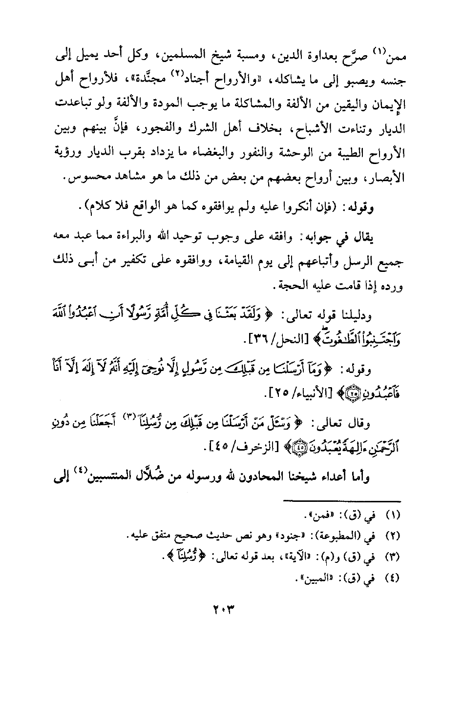 وقال تعالى: {وَاسْأَلْ مَنْ أَرْسَلْنَا مِنْ قَبْلِكَ مِنْ رُسُلِنَا (¬3) أَجَعَلْنَا مِنْ دُونِ الرَّحْمَنِ آلِهَةً يُعْبَدُونَ} [الزخرف: 45] [الزخرف / 45]