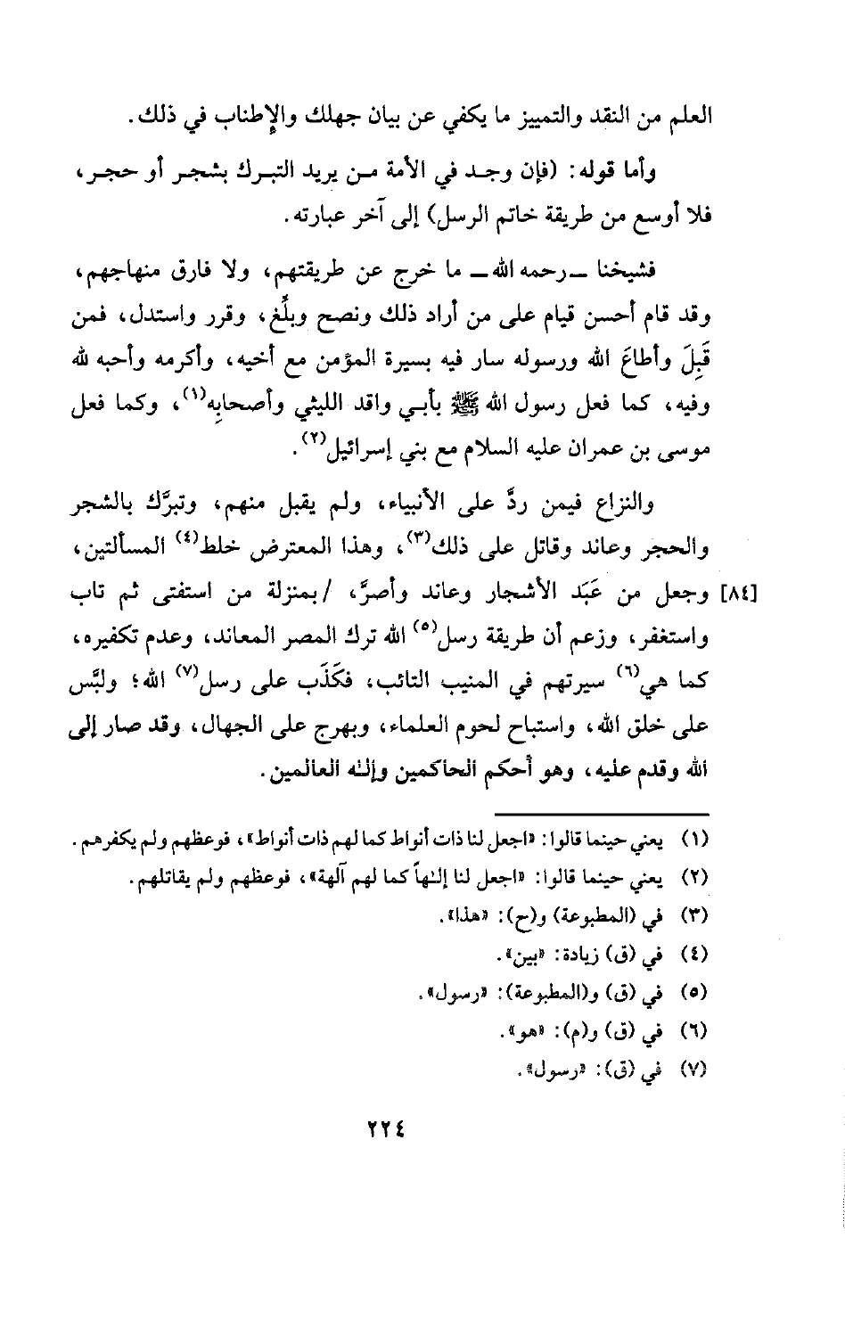 وأما قوله: (فإن وجد في الأمة من يريد التبرك بشجر أو حجر، فلا أوسع من طريقة خاتم الرسل) إلى آخر عبارته.