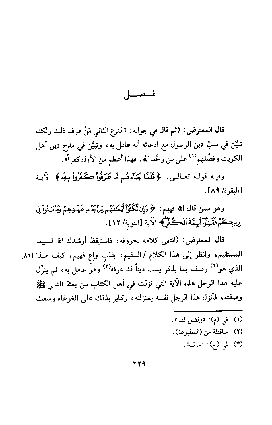 قال المعترض: (انتهى كلامه بحروفه، فاستيقظ أرشدك الله لسبيله المستقيم، وانظر إلى هذا الكلام السقيم، بقلب واع فهيم، كيف هذا، الذي هو (¬2) وصف بما يذكر يسب دينا قد عرفه (¬3) وهو عامل به، ثم ينزل عليه هذا الرجل هذه الآية التي نزلت في أهل الكتاب من بعثة النبي صلى الله عليه وسلم وصفته، فأنزل هذا الرجل نفسه بمنزلته، وكابر بذلك على الغوغاء وسفك