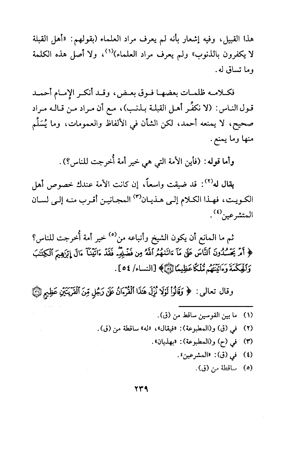 ثم ما المانع أن يكون الشيخ وأتباعه من (¬5) خير أمة أخرجت للناس؟ {أَمْ يَحْسُدُونَ النَّاسَ عَلَى مَا آتَاهُمُ اللَّهُ مِنْ فَضْلِهِ فَقَدْ آتَيْنَا آلَ إِبْرَاهِيمَ الْكِتَابَ وَالْحِكْمَةَ وَآتَيْنَاهُمْ مُلْكًا عَظِيمًا} [النساء: 54] [النساء / 54]