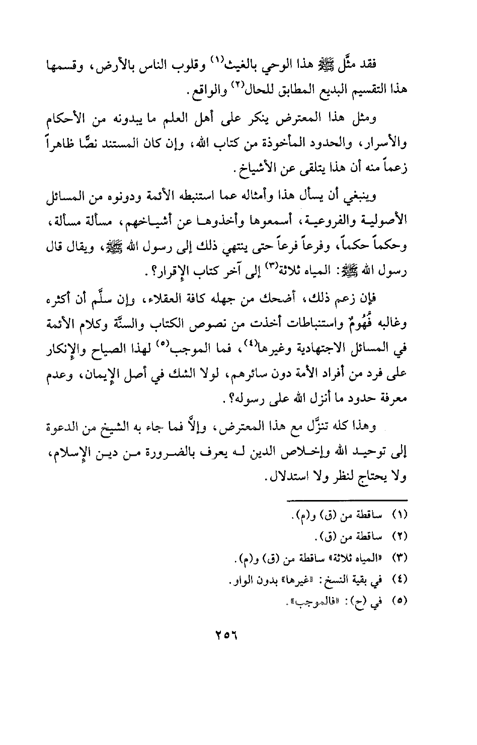 فإن زعم ذلك، أضحك من جهله كافة العقلاء، وإن سلم أن أكثره وغالبه فهوم واستنباطات أخذت من نصوص الكتاب والسنة وكلام الأئمة في المسائل الاجتهادية وغيرها (¬4) فما الموجب (¬5) لهذا الصياح والإنكار على فرد من أفراد الأمة دون سائرهم، لولا الشك في أصل الإيمان، وعدم معرفة حدود ما أنزل الله على رسوله؟ .
