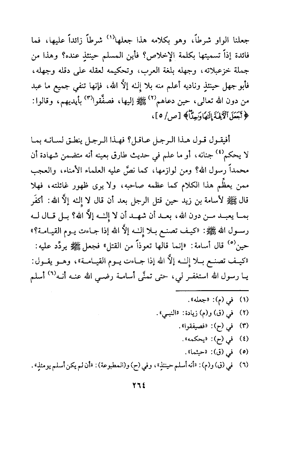 أفيقول قول هذا الرجل عاقل؟ فهذا الرجل ينطق لسانه بما لا يحكم (¬4) جنانه، أو ما علم في حديث طارق بعينه أنه متضمن شهادة أن محمدا رسول الله؟ ومن لوازمها، كما نص عليه العلماء الأمناء، والعجب ممن يعظم هذا الكلام كما عظمه صاحبه، ولا يرى ظهور غائلته، فهلا قال صلى الله عليه وسلم لأسامة بن زيد حين قتل الرجل بعد أن قال لا إله إلا الله: أكفر بما يعبد من دون الله، بعد أن شهد أن لا إله إلا الله؟ بل قال له رسول الله صلى الله عليه وسلم: " «كيف تصنع بلا إله إلا الله إذا جاءت يوم القيامة؟ " حين (¬5) قال أسامة: "إنما قالها تعوذا من القتل " فجعل صلى الله عليه وسلم يردد عليه: "كيف تصنع بلا إله إلا الله إذا جاءت يوم القيامة"، وهو يقول: يا رسول الله استغفر لي، حتى تمنى أسامة رضي الله عنه أنه (¬6) أسلم