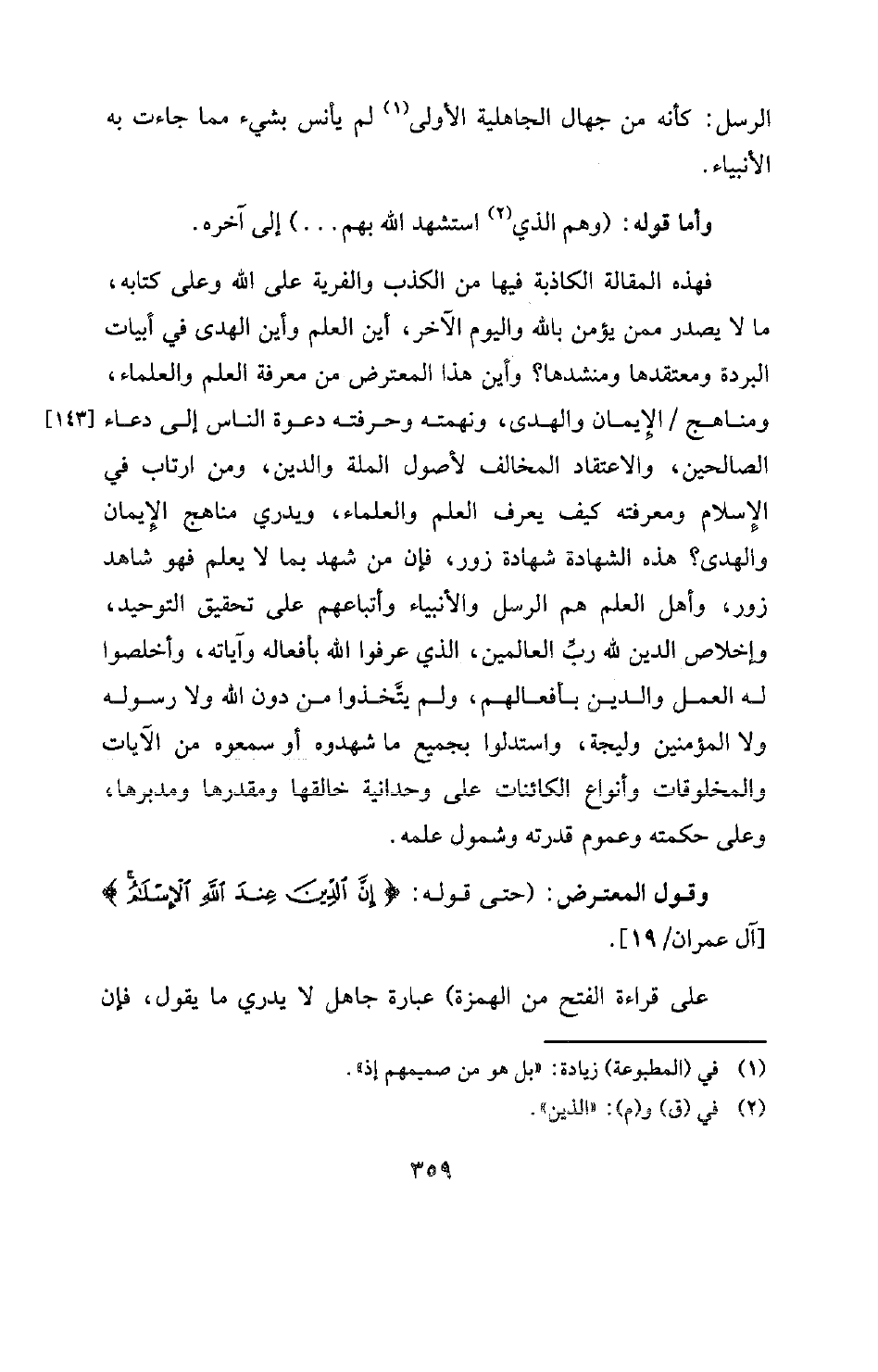 وقول المعترض: (حتى قوله: {إِنَّ الدِّينَ عِنْدَ اللَّهِ الْإِسْلَامُ} [آل عمران: 19] [آل عمران: 19] .