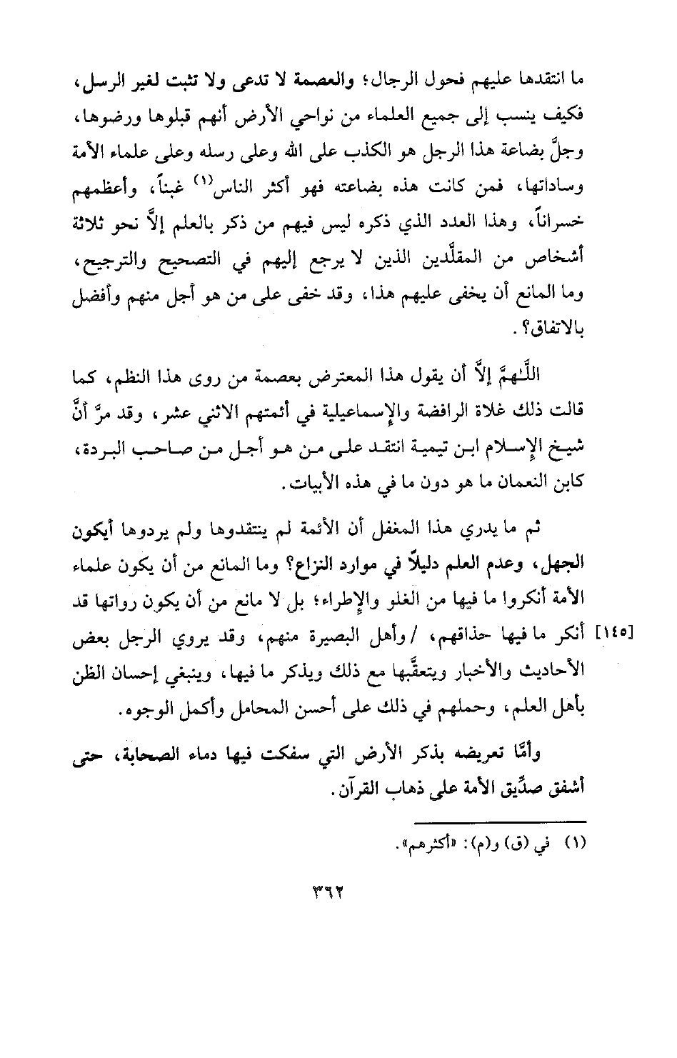 ثم ما يدري هذا المغفل أن الأئمة لم ينتقدوها ولم يردوها أيكون الجهل، وعدم العلم دليلاً في موارد النزاع؟ وما المانع من أن يكون علماء الأمة أنكروا ما فيها من الغلو والإطراء؟ بل لا مانع من أن يكون رواتها قد أنكر ما فيها حذاقهم، وأهل البصيرة منهم، وقد يروي الرجل بعض الأحاديث والأخبار ويتعقَّبها مع ذلك ويذكر ما فيها، وينبغي إحسان الظن بأهل العلم، وحملهم في ذلك على أحسن المحامل وأكمل الوجوه.