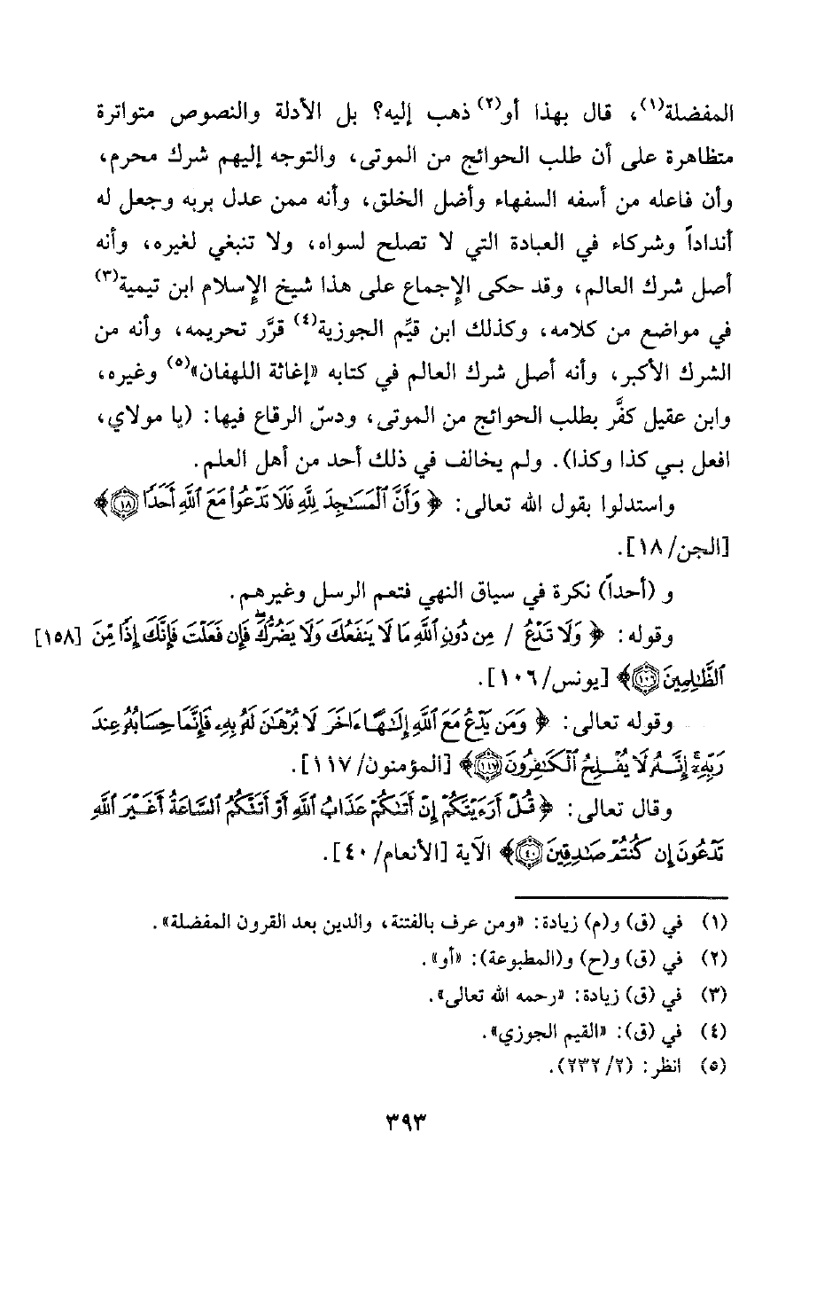 بل الأدلة والنصوص متواترة متظاهرة على أن طلب الحوائج من الموتى، والتوجه إليهم شرك محرم، وأن فاعله من أسفه السفهاء وأضل الخلق، وأنه ممن عدل بربه وجعل له أندادا وشركاء في العبادة التي لا تصلح لسواه، ولا تنبغي لغيره، وأنه أصل شرك العالم، وقد حكى الإجماع على هذا شيخ الإسلام ابن تيمية (¬3) في مواضع من كلامه، وكذلك ابن قيّم الجوزية (¬4) قرَّر تحريمه، وأنه من الشرك الأكبر، وأنه أصل شرك العالم في كتابه "إغاثة اللهفان " (¬5) وغيره، وابن عقيل كفَّر بطلب الحوائج من الموتى، ودسّ الرقاع فيها: (يا مولاي، افعل بي كذا وكذا) . ولم يخالف في ذلك أحد من أهل العلم.