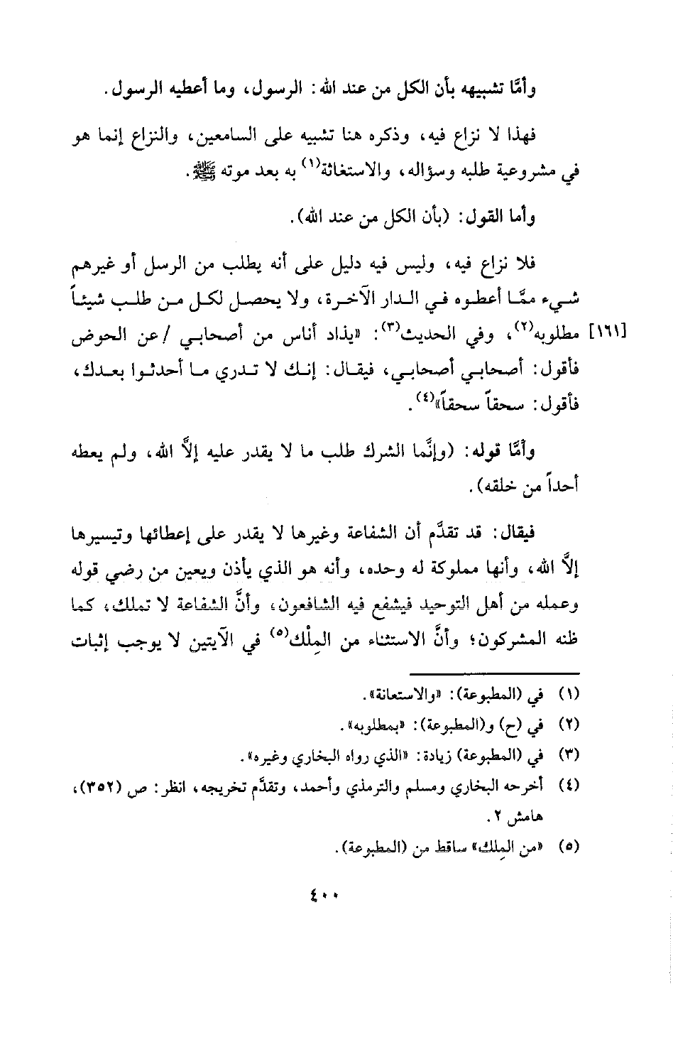 وأما القول: (بأن الكل من عند الله) . فلا نزاع فيه، وليس فيه دليل على أنه يطلب من الرسل أو غيرهم شيء ممَّا أعطوه في الدار الآخرة، ولا يحصل لكل من طلب شيئا [161] مطلوبه (¬2) وفي الحديث (¬3) " «يذاد أناس من أصحابي عن الحوض فأقول: أصحابي أصحابي، فيقال: إنك لا تدري ما أحدثوا بعدك، فأقول: سحقا سحقا» " (¬4) .