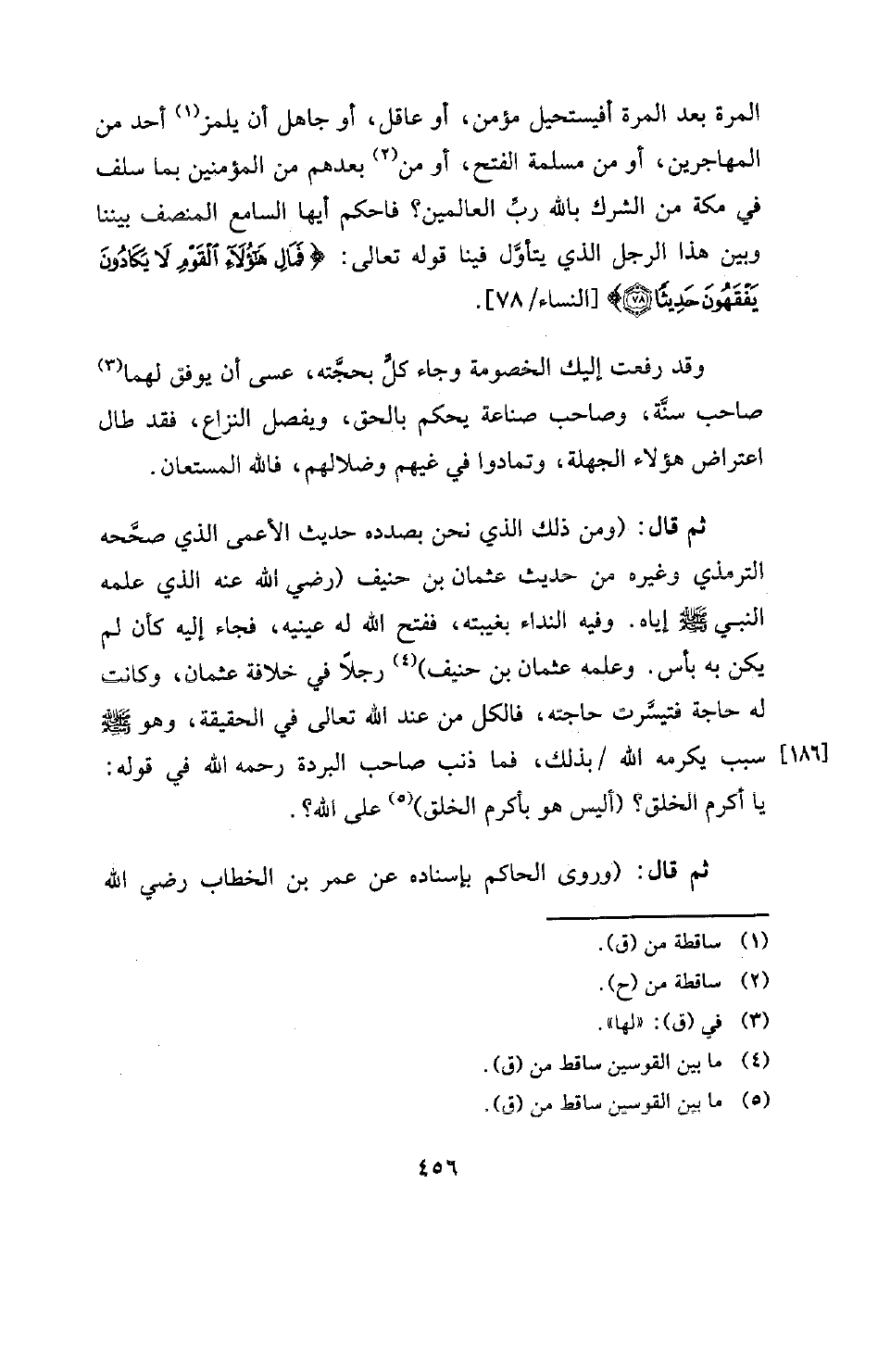 المرة بعد المرة أفيستحيل مؤمن، أو عاقل، أو جاهل أن يلمز (¬1) أحد من المهاجرين، أو من مسلمة الفتح، أو من (¬2) بعدهم من المؤمنين بما سلف في مكة من الشرك بالله رب العالمين؟ فاحكم أيها السامع المنصف بيننا وبين هذا الرجل الذي يتأوَّل فينا قوله تعالى: {فَمَالِ هَؤُلَاءِ الْقَوْمِ لَا يَكَادُونَ يَفْقَهُونَ حَدِيثًا} [النساء: 78] [النساء: 78-78] .