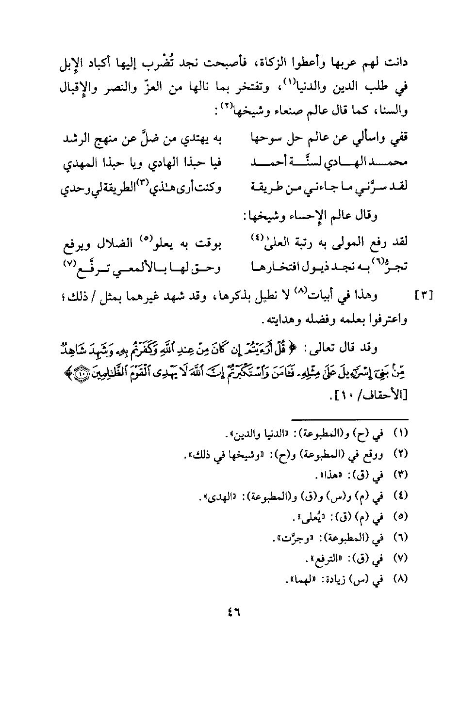 دانت لهم عربها وأعطوا الزكاة، فأصبحت نجد تُضْرب إليها أكباد الإبل في طلب الدين والدنْيا (¬1) وتفتخر بما نالها من العزّ والنصر والإقبال والسنا، كما قال عالم صنعاء وشيخها (¬2) .