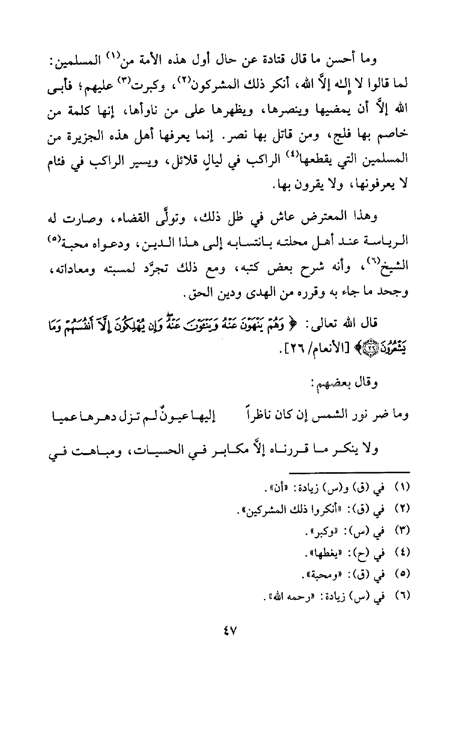 وما أحسن ما قال قتادة عن حال أول هذه الأمة من (¬1) .
