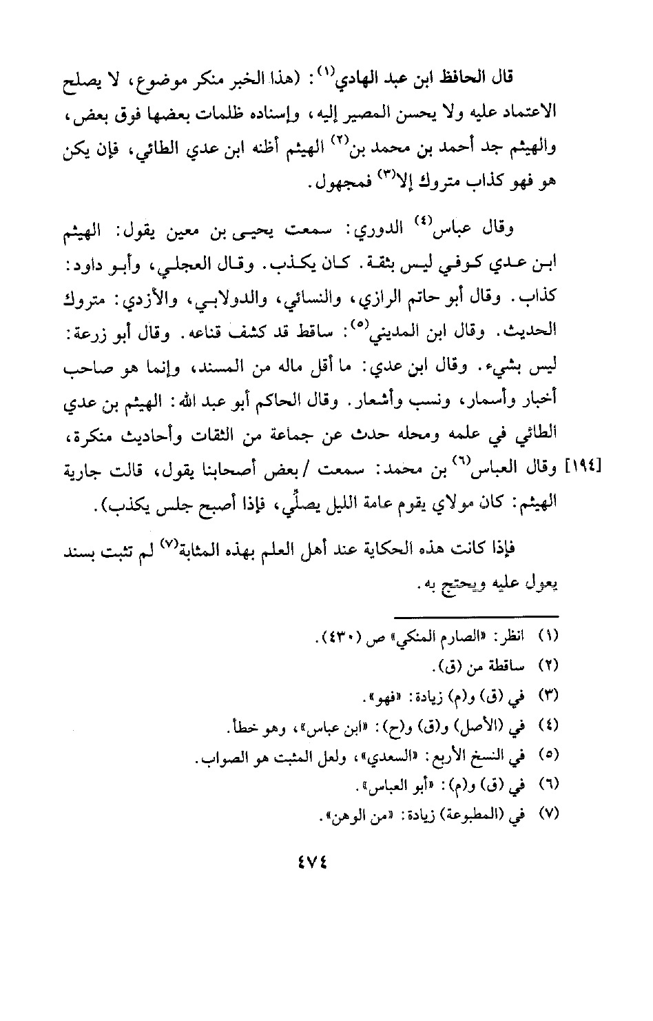 وقال عباس (¬4) الدوري: سمعت يحيى بن معين يقول: الهيثم بن عدي كوفي ليس بثقة. كان يكذب. "وقال العجلي، وأبو داود: كذاب. وقال أبو حاتم الرازي، والنسائي، والدولابي، والأزدي: متروك الحديث. وقال ابن المديني (¬5) ساقط قد كشف قناعه. وقال أبو زرعة: ليس بشيء. وقال ابن عدي: ما أقل ماله من المسند، وإنما هو صاحب أخبار وأسمار، ونسب وأشعار. وقال الحاكم أبو عبد الله: الهيثم بن عدي الطائي في علمه ومحله حدث عن جماعة من الثقات وأحاديث منكرة، وقال العباس (¬6) بن محمد: سمعت بعض أصحابنا يقول، قالت جارية الهيثم: كان مولاي يقوم عامة الليل يصلِّي، فإن أصبح جلس يكذب) .