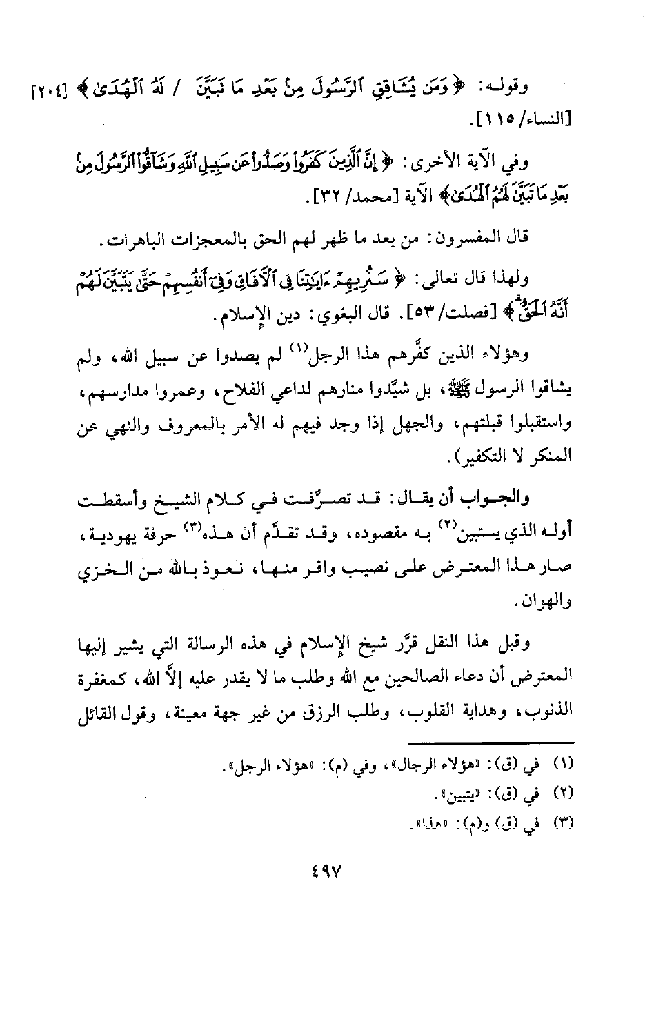 وفي الآية الأخرى: {إِنَّ الَّذِينَ كَفَرُوا وَصَدُّوا عَنْ سَبِيلِ اللَّهِ وَشَاقُّوا الرَّسُولَ مِنْ بَعْدِ مَا تَبَيَّنَ لَهُمُ الْهُدَى} [محمد: 32] الآية [محمد / 32] .