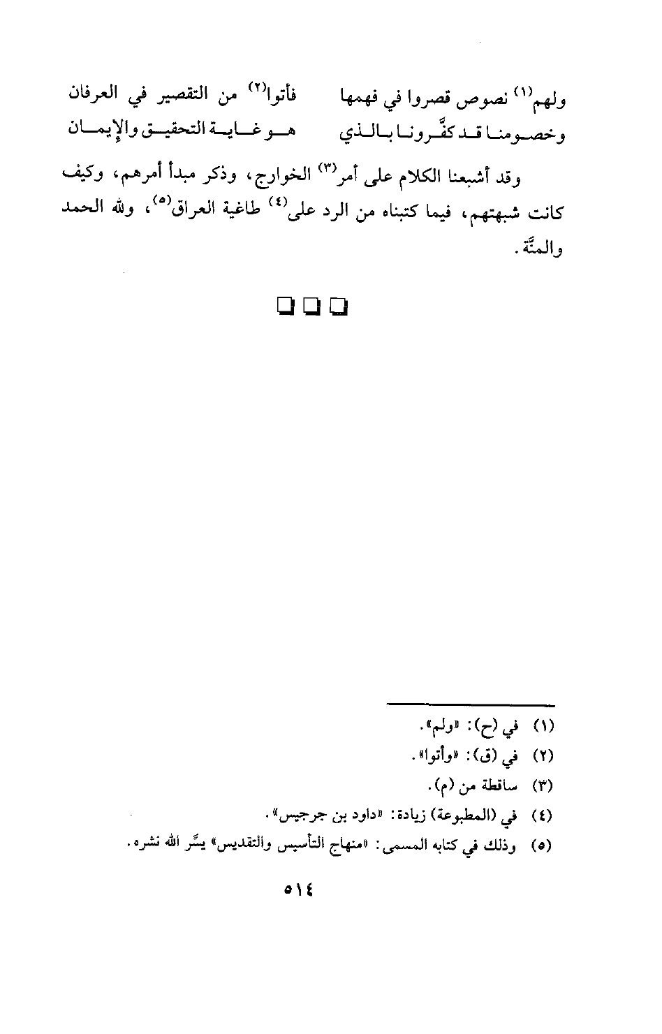 (¬5) وذلك في كتابه المسمى: "منهاج التأسيس والتقديس" يسَّر الله نشره.