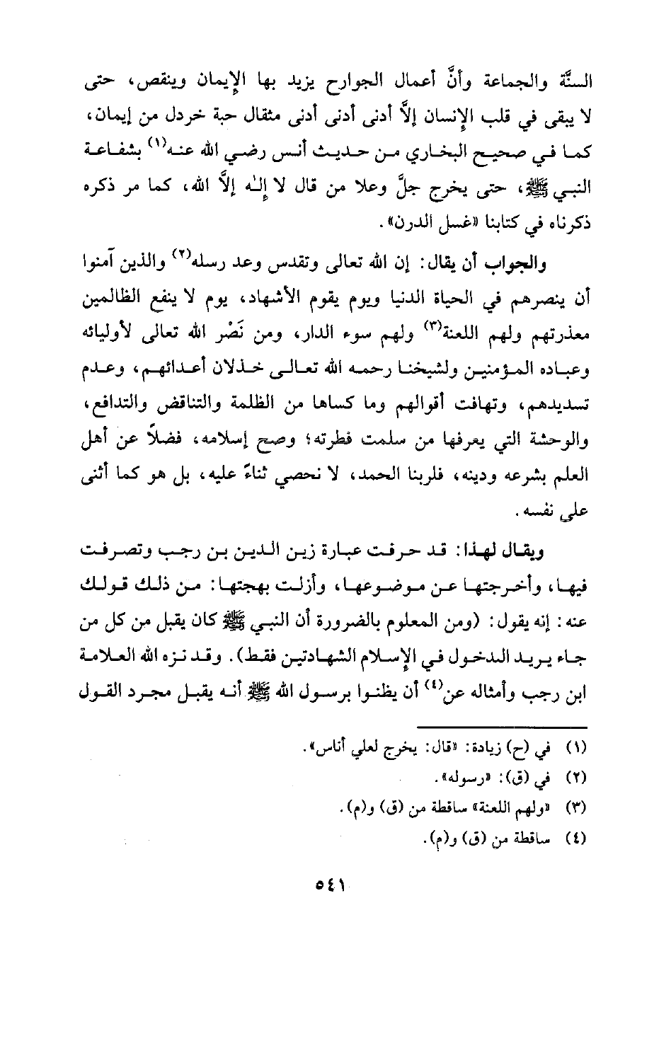 السنَّة والجماعة وأنَّ أعمال الجوارح يزيد بها الإيمان وينقص، حتى لا يبقى في قلب الإنسان إلا أدنى أدنى أدنى مثقال حبة خردل من إيمان، كما في صحيح البخاري من حديث أنس رضي الله عنه (¬1) بشفاعة النبي صلى الله عليه وسلم، حتى يخرج جل وعلا من قال لا إله إلا الله، كما مر ذكره ذكرناه في كتابنا "غسل الدرن".
