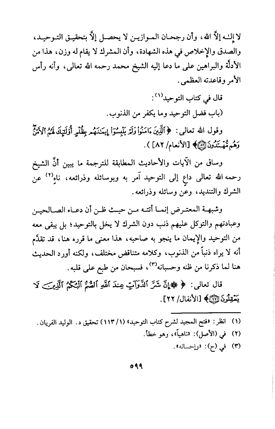 (¬1) انظر: "فتح المجيد لشرح كتاب التوحيد" (1 113) تحقيق د. الوليد الفريان.