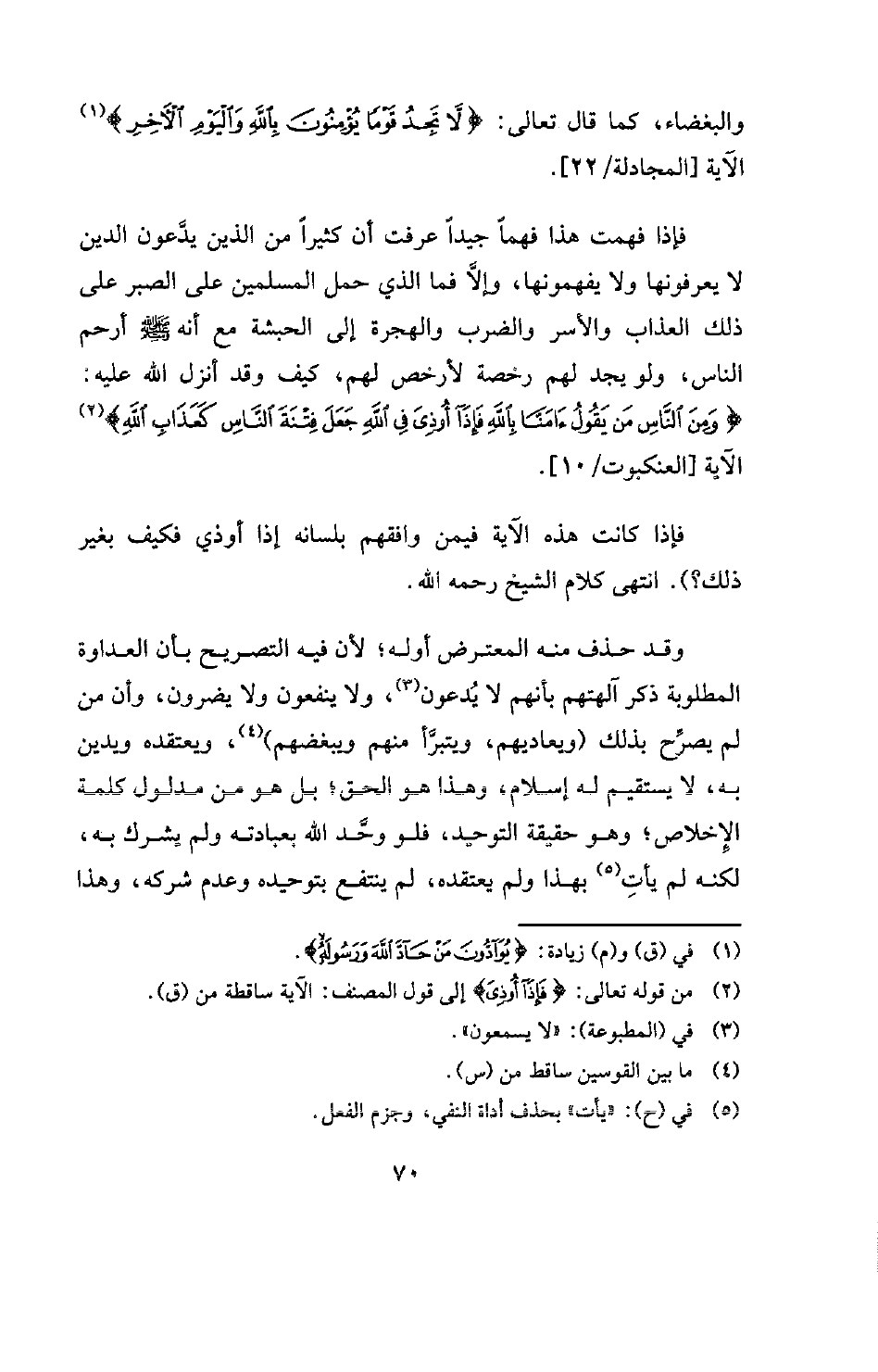 فإذا فهمت هذا فهمًا جيدًا عرفت أن كثيرًا من الذين يدَّعون الدين لا يعرفونها ولا يفهمونها، وإلا فما الذي حمل المسلمين على الصبر على ذلك العذاب والأسر والضرب والهجرة إلى الحبشة مع أنه صلى الله عليه وسلم أرحم الناس، ولو يجد لهم رخصة لأرخص لهم، كيف وقد أنزل الله عليه: {وَمِنَ النَّاسِ مَنْ يَقُولُ آمَنَّا بِاللَّهِ فَإِذَا أُوذِيَ فِي اللَّهِ جَعَلَ فِتْنَةَ النَّاسِ كَعَذَابِ اللَّهِ} [العنكبوت: 10] (¬2) الآية [العنكبوت -10] .