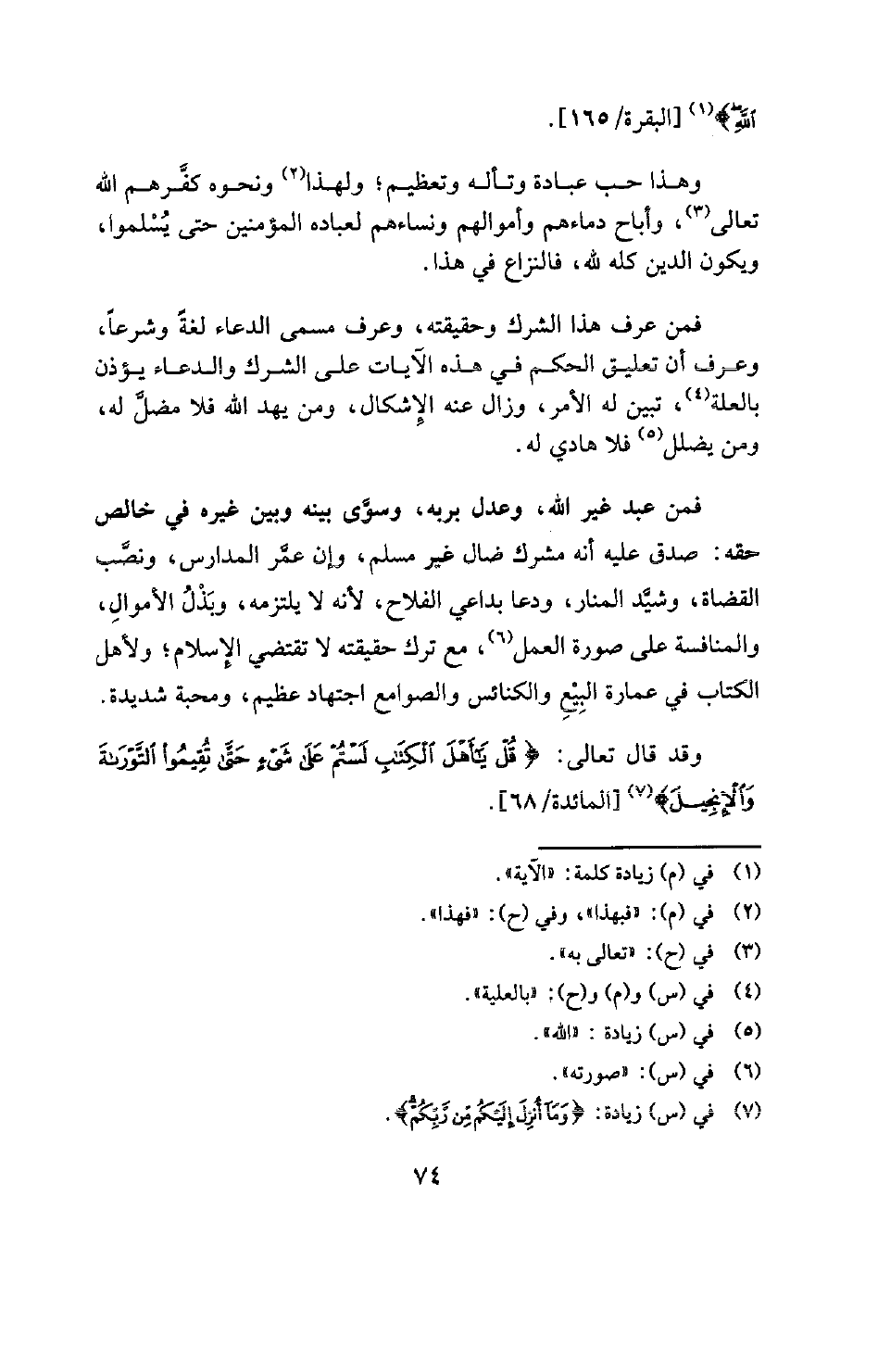 فمن عبد غير الله، وعدل بربه، وسوَّى بينه وبين غيره في خالص حقه: صدق عليه أنه مشرك ضال غير مسلم، دهان عفر المدارس، ونضب القضاة، وشيَّد المنار، ودعا بداعي الفلاح، لأنه لا يلتزمه، وبَذْلُ الأموالِ، والمنافسة على صورة العمل (¬5) مع ترك حقيقته لا تقتضي الإسلام؛ ولأهل الكتاب في عمارة البِيَعِ والكنائس والصوامع اجتهاد عظيم، ومحبة شديدة. وقد قال تعالى: {قُلْ يَا أَهْلَ الْكِتَابِ لَسْتُمْ عَلَى شَيْءٍ حَتَّى تُقِيمُوا التَّوْرَاةَ وَالْإِنْجِيلَ} [المائدة: 68] (¬6) [المائدة / 68] .