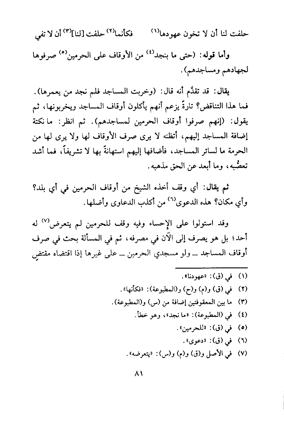 وأما قوله: (حتى ما بنجد (¬4) من الأوقاف على الحرمين (¬5) صرفوها لجهادهم ومساجدهم) .