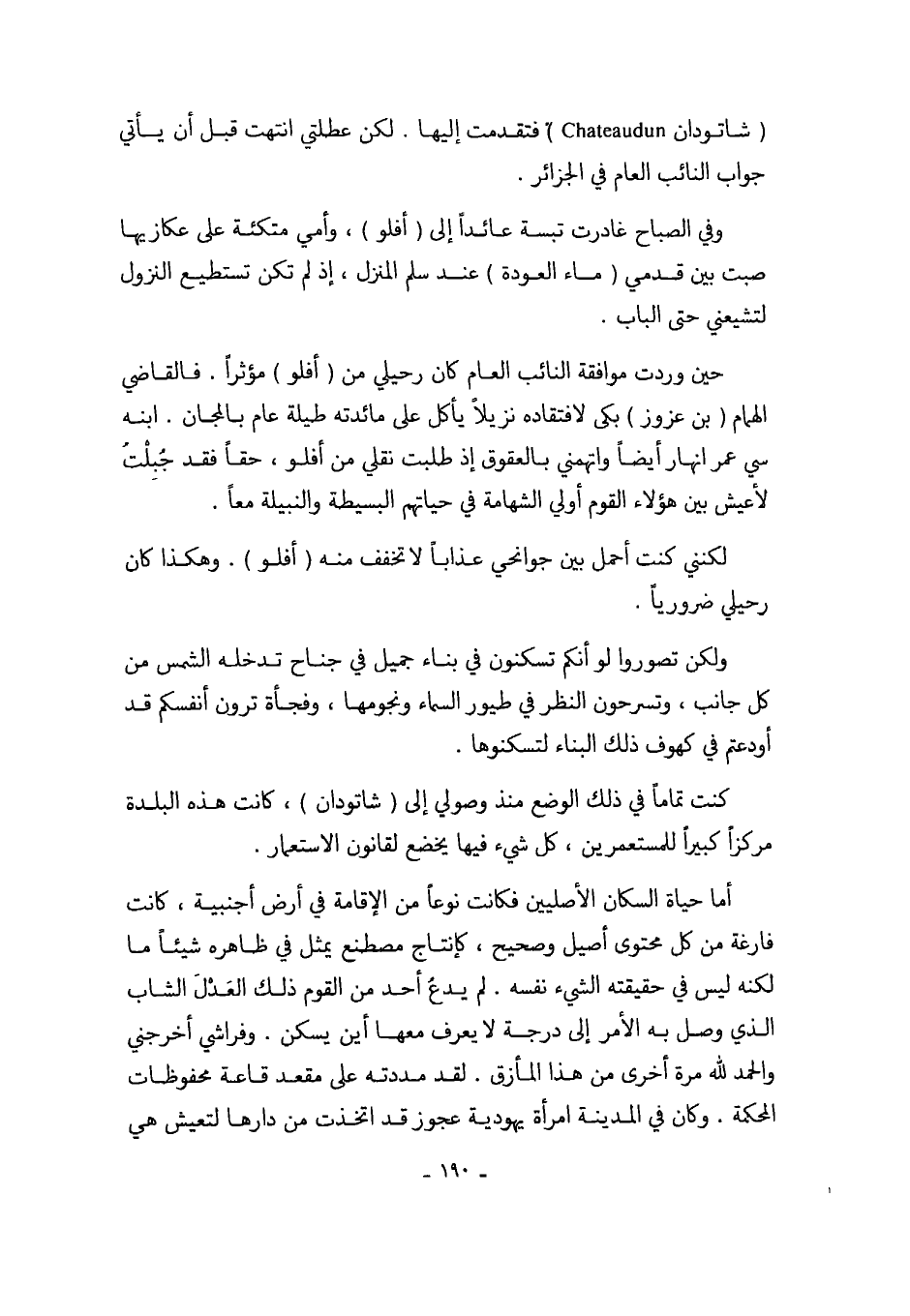 كنت تماماً في ذلك الوضع منذ وصولي إلى (شاتودان)، كانت هذه البلدة مركزاً كبيراً للمستعمرين، كل شيء فيها يخضع لقانون الاستعمار.
