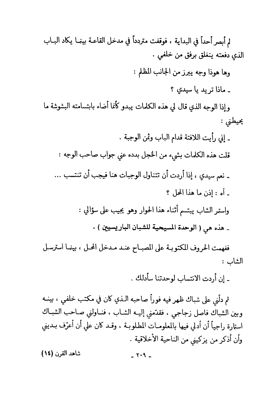 وإذا الوجه الذي قال لي هذه الكلمات يبدو كأنما أضاء بابتسامته البشوشة ما يحيطني: