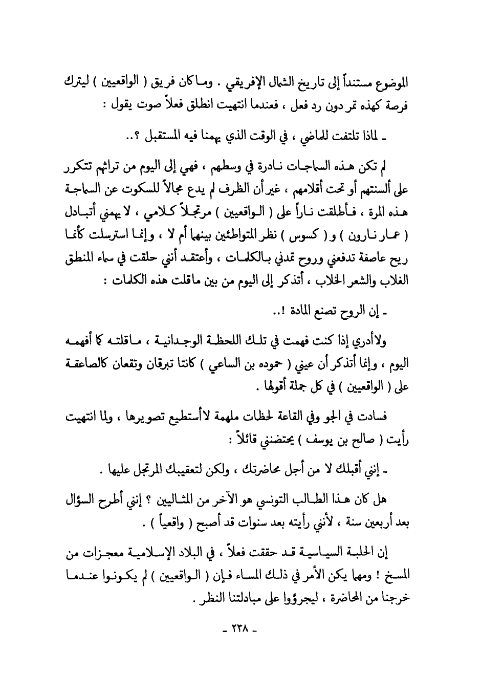 هل كان هذا الطالب التونسي هو الآخر من المثاليين؟ إنني أطرح السؤال بعد أربعين سنة، لأنني رأيته بعد سنوات قد أصبح (واقعياً).