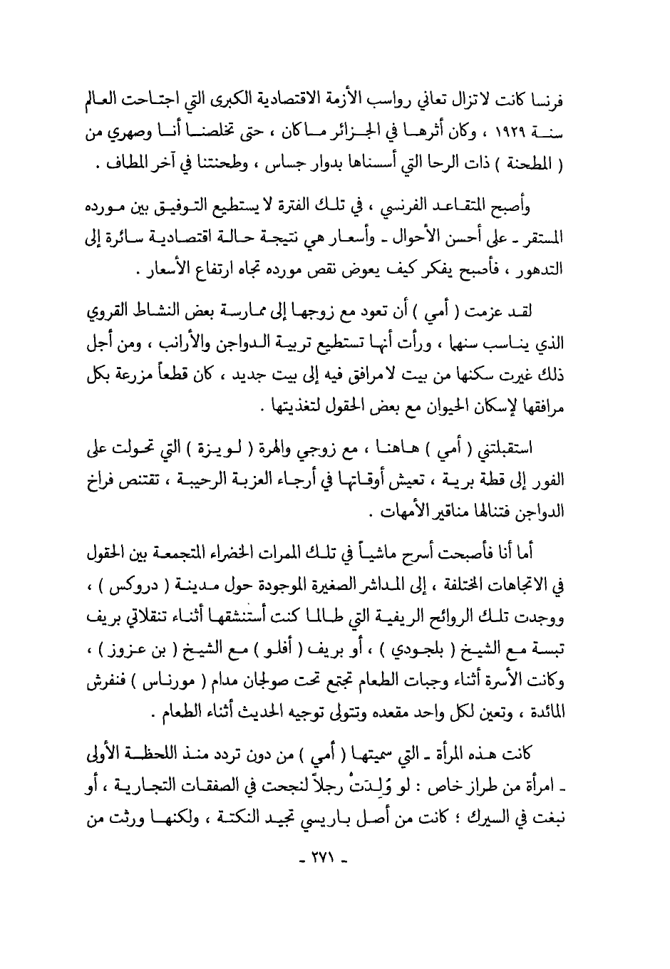 فرنسا كانت لا تزال تعاني رواسب الأزمة الاقتصادية الكبرى التي اجتاحت العالم سنة 1929، وكان أثرها في الجزائر ما كان، حتى تخلصنا أنا وصهري من (المطحنة) ذات الرحا التي أسسناها بدوار جساس، وطحنتنا في آخر المطاف.