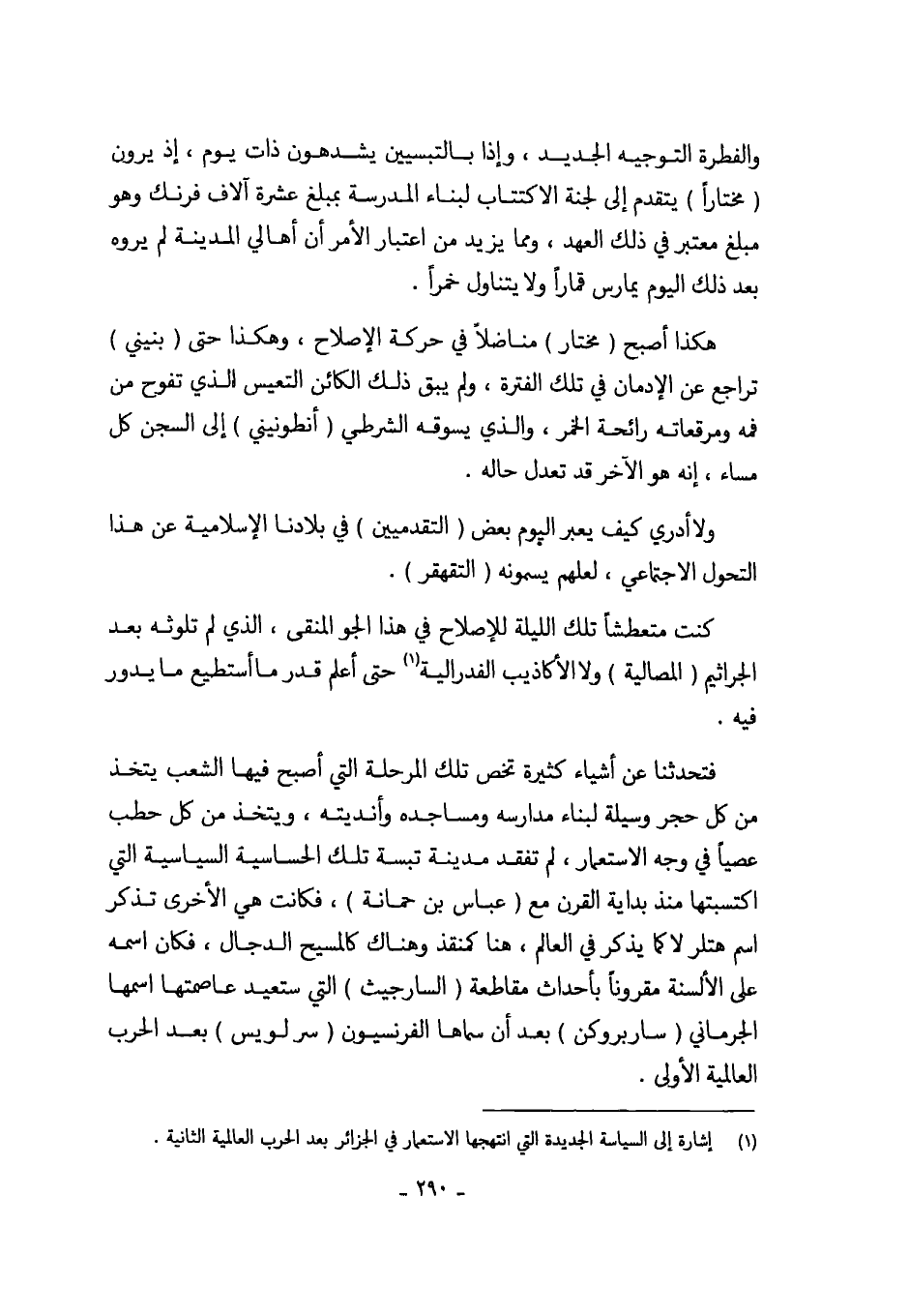 (¬1) إشارة إلى السياسة الجديدة التي انتهجها الاستعمارفي الجزائر بعد الحرب العالمية الثانية.