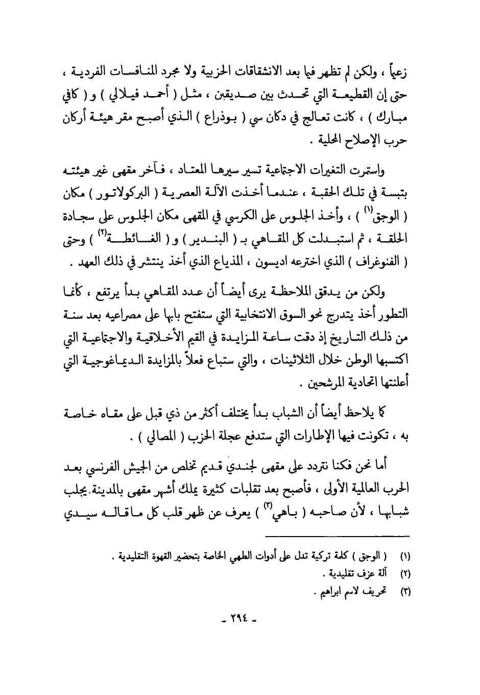 أما نحن فكنا نتردد على مقهى لجندي قديم تخلص من الجيش الفرنسي بعد الحرب العالمية الأولى، فأصبح بعد تقلبات كثيرة يملك أشهر مقهى بالمدينة. يجلب شبابها، لأن صاحبه (باهي (¬3)) يعرف عن ظهر قلب كل ما قاله سيدي