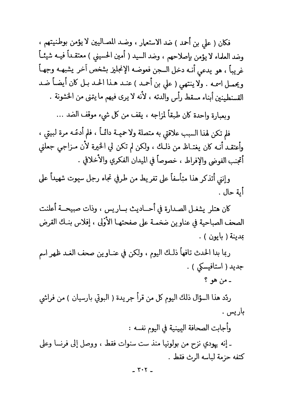 وبعبارة واحدة كان طبقاً لمزاجه، يقف من كل شيء موقف الضد ...