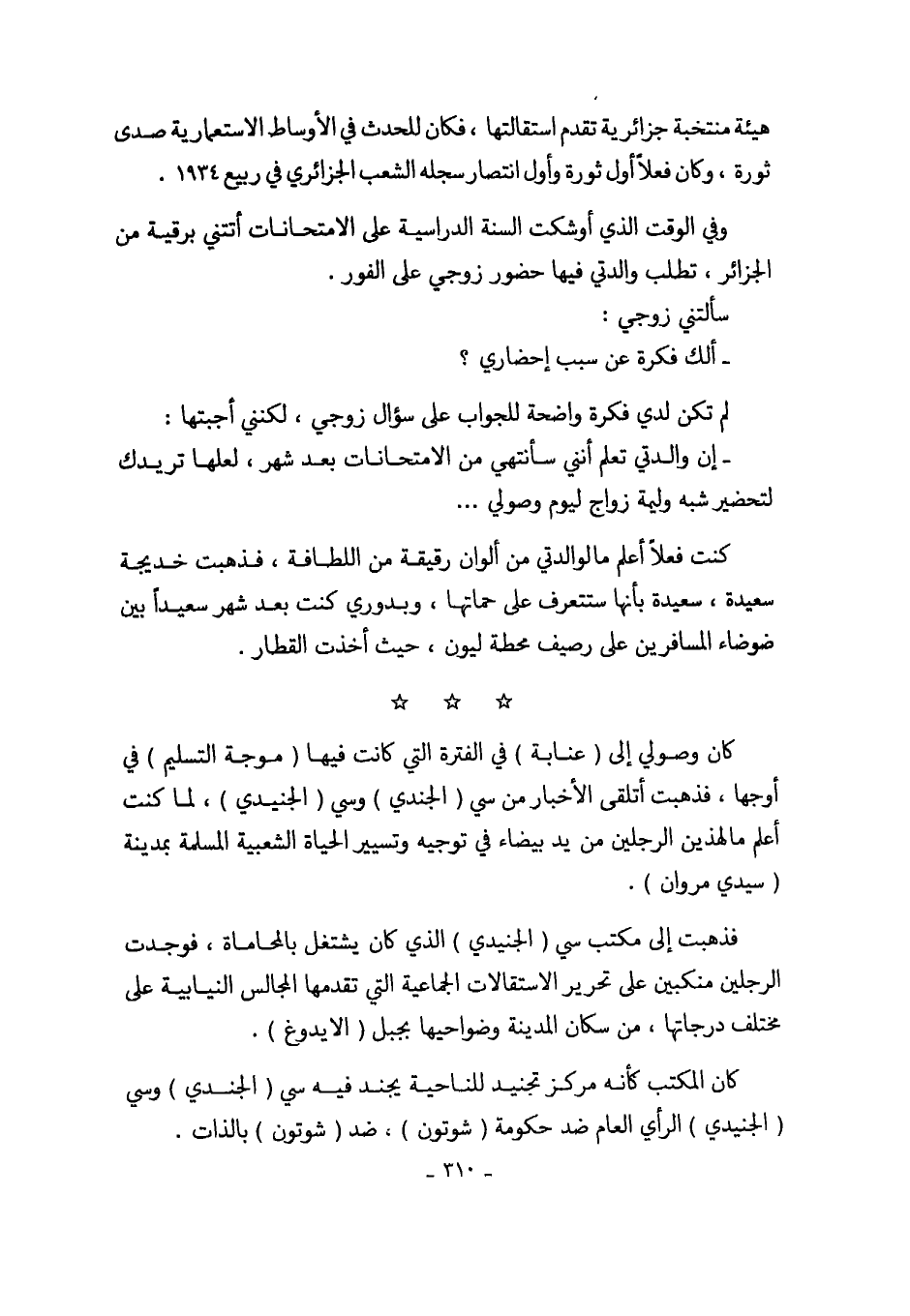 وفي الوقت الذي أوشكت السنة الدراسية على الامتحانات أتتني برقية من الجزائر، تطلب والدتي فيها حضور زوجي على الفور.