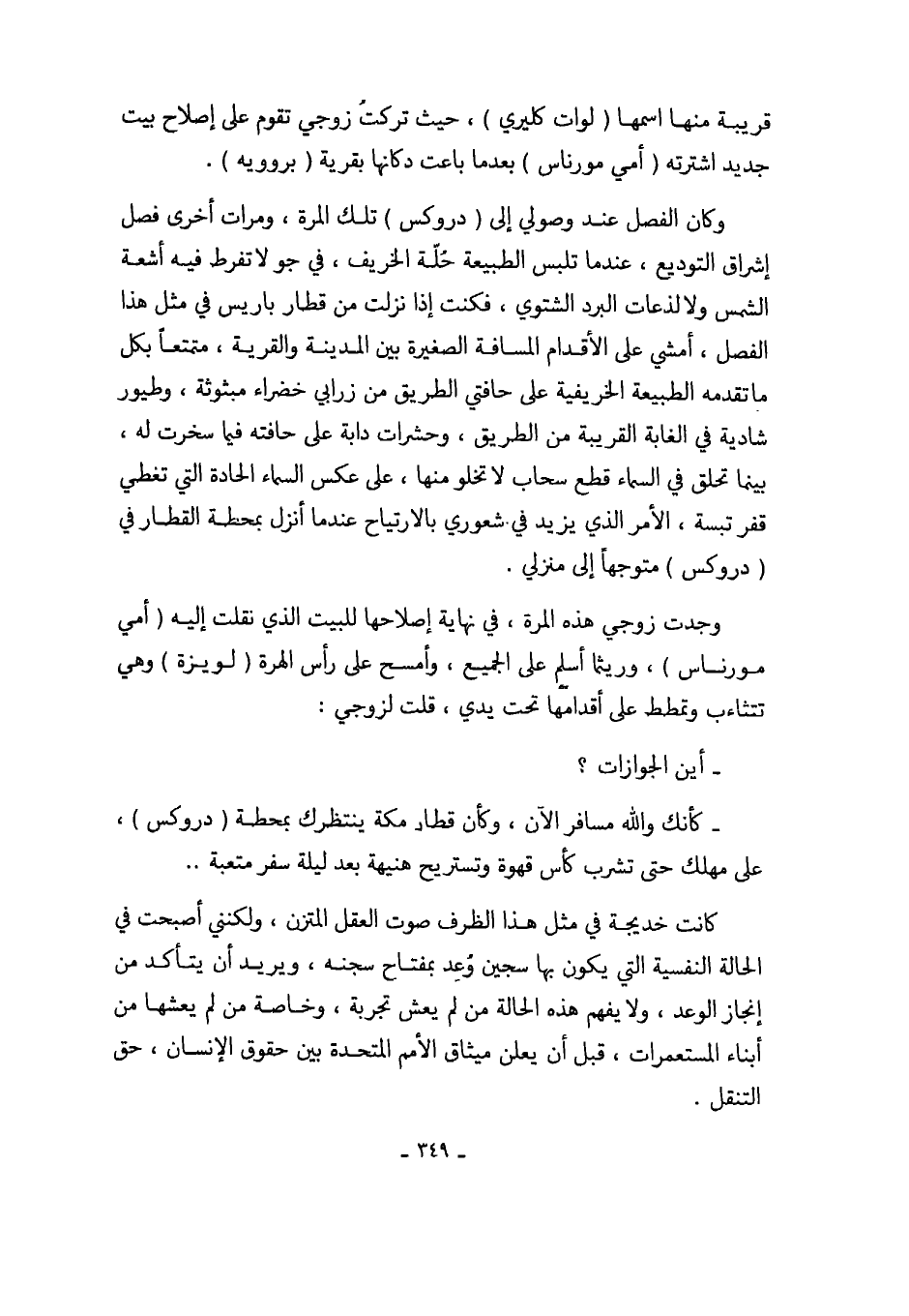 كانت خديجة في مثل هذا الظرف صوت العقل المتزن، ولكنني أصبحت في الحالة النفسية التي يكون بها سجين وُعِد بمفتاح سجنه، ويريد أن يتأكد من إنجاز الوعد، ولا يفهم هذه الحالة من لم يعش تجربة، وخاصة من لم يعشها من أبناء المستعمرات، قبل أن يعلن ميثاق الأمم المتحدة بين حقوق الإنسان، حتى التنقل.