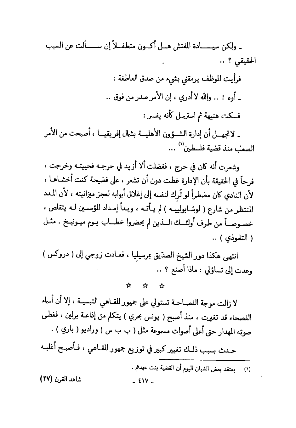 - لا تجهل أن إدارة الشؤون الأهلية بشمال إفريقيا، أصبحت من الأمر الصعب منذ قضية فلسطين (¬1) ...