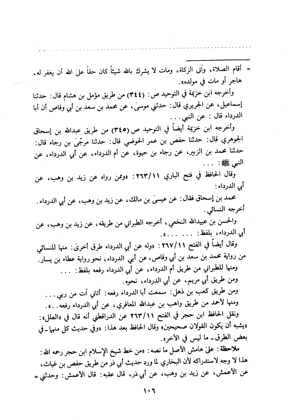 وأخرجه ابن خزيمة أيضاً في التوحيد ص (345) من طريق عبد الله بن إسحاق الجوهري قال: حدثنا حفص بن عمر الحوضي قال: حدورا مرجّى بن رجاء قال: حدثنا محمد بن الزبير، عن رجاء بن حيوة، عن أم الدرداء، عن أبي الدرداء، عن النبي - صلى الله عليه وسلم -: ...