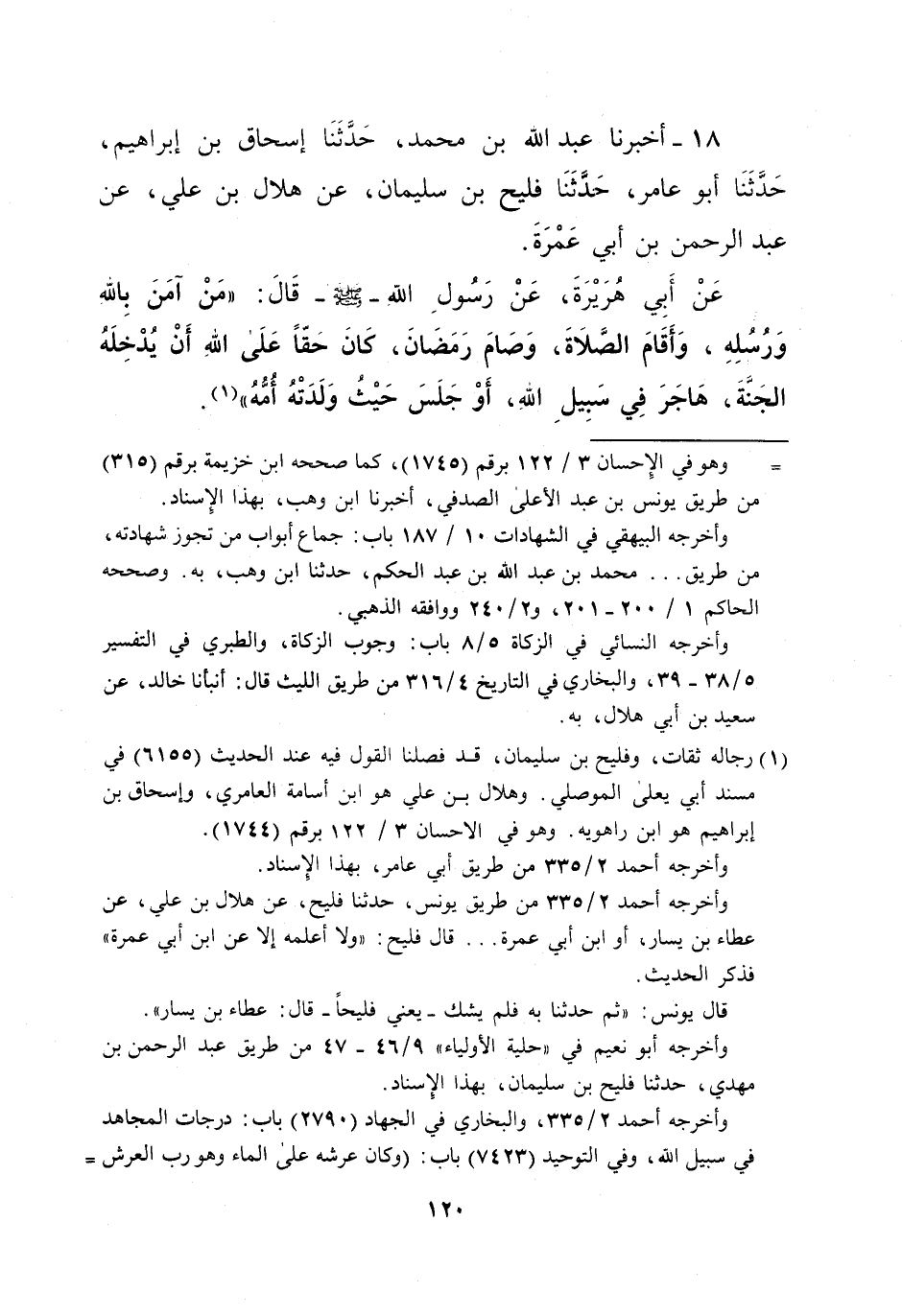 (¬1) رجاله ثقات، وفليح بن سليمان، قد فصلنا القول فيه عند الحديث (6155) في مسند أبي يعلى الموصلي. وهلال بن علي هو ابن أسامة العامري، وإسحاق بن إبراهيم هو ابن راهويه. وهو في الإحسان 3/ 122 برقم (1744).