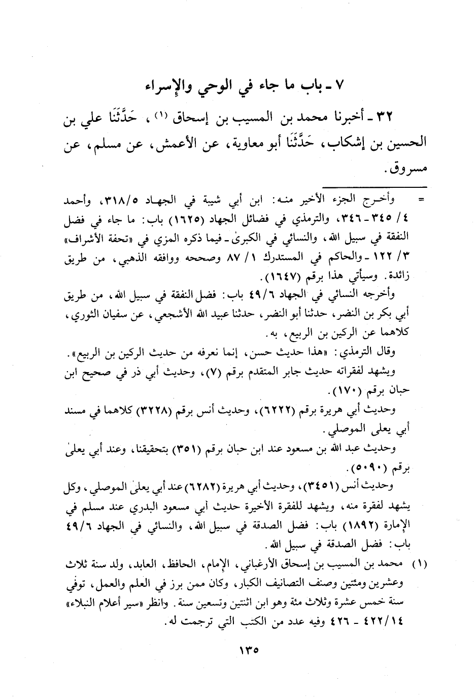 32 - أخبرنا محمد بن المسيب بن إسحاق (¬1)، حَدَّثَنَا علي بن الحسين بن إشكاب، حَدَّثَنَا أبو معاوية، عن الأعمش، عن مسلم، عن مسروق.