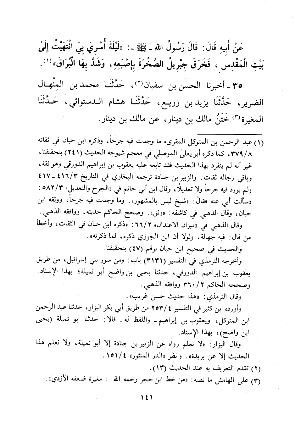 (¬3) على الهامش ما نصه: "من خط ابن حجر رحمه الله: مغيرة ضعفه الأزدي".