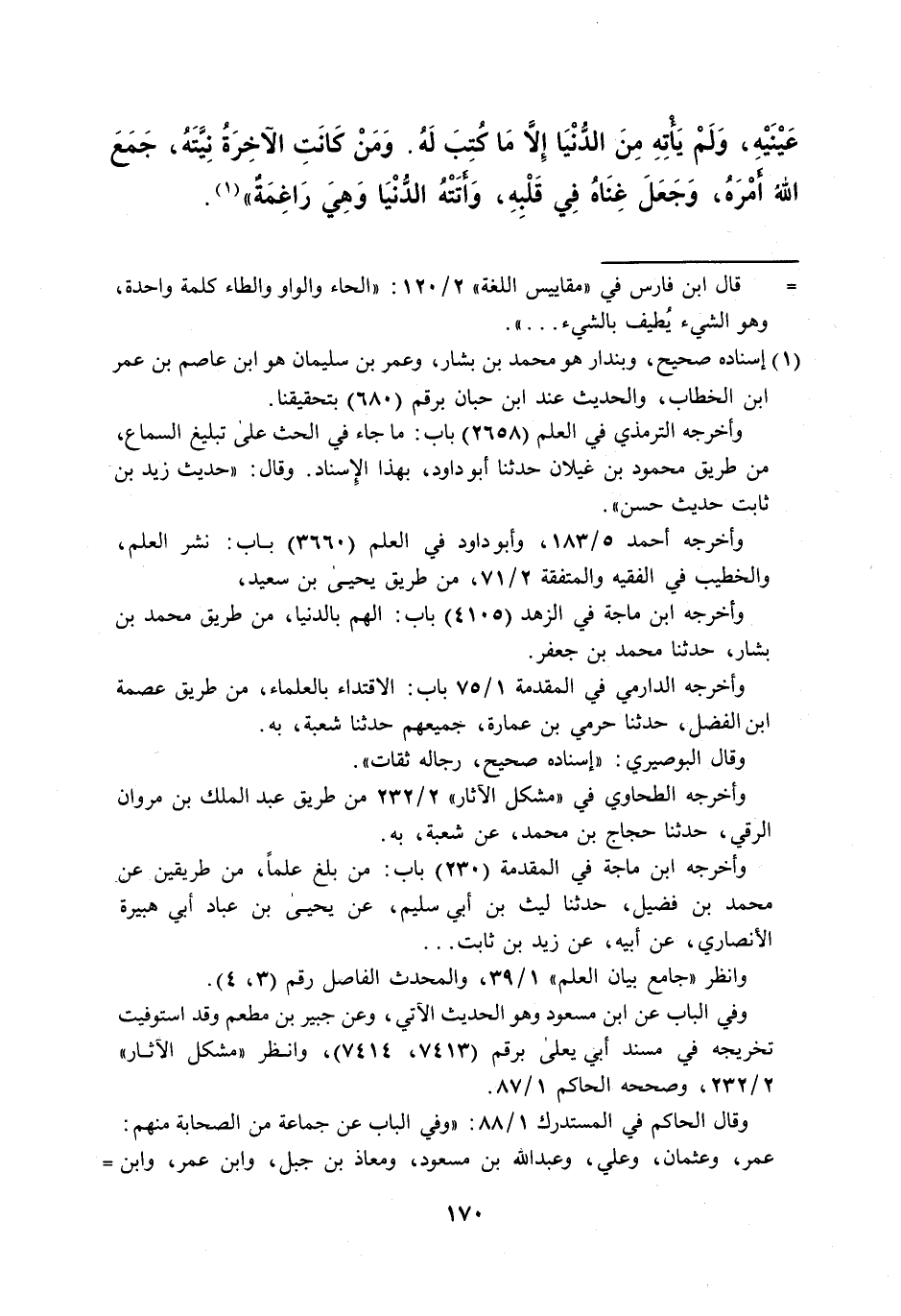 وأخرجه أحمد 5/ 183، وأبو داود في العلم (3660) باب: نشر العلم، والخطيب في الفقيه والمتفقة 2/ 71، من طريق يحيى بن سعيد،
