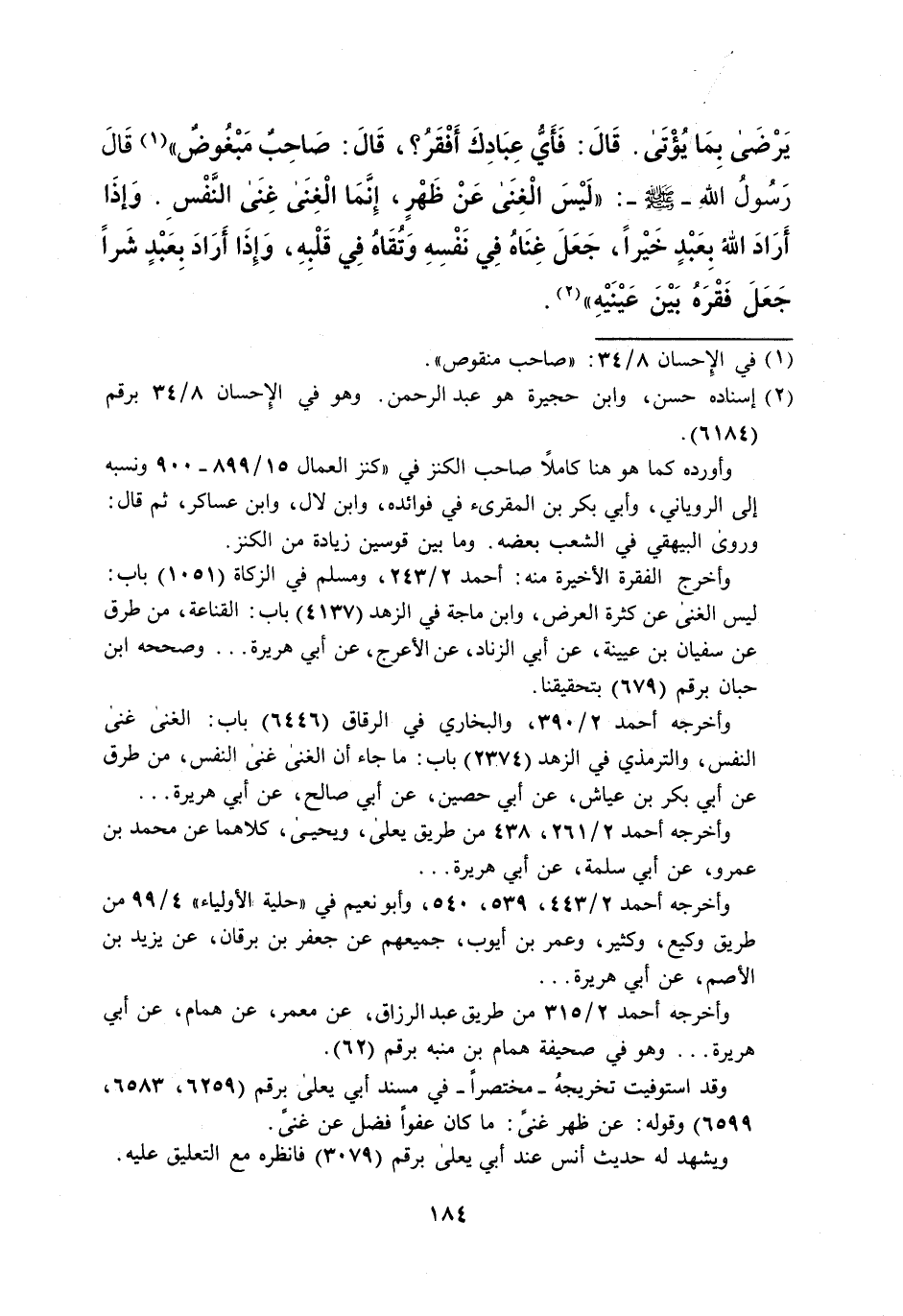 وأخرج الفقرة الأخيرة منه: أحمد 2/ 243، ومسلم في الزكاة (1051) باب: ليس الغنى عن كثرة العرض، وابن ماجة في الزهد (4137) باب: القناعة، من طرق عن سفيان بن عيينة، عن أبي الزناد، عن الأعرج، عن أبي هريرة ... وصححه ابن حبان برقم (679) بتحقيقنا.