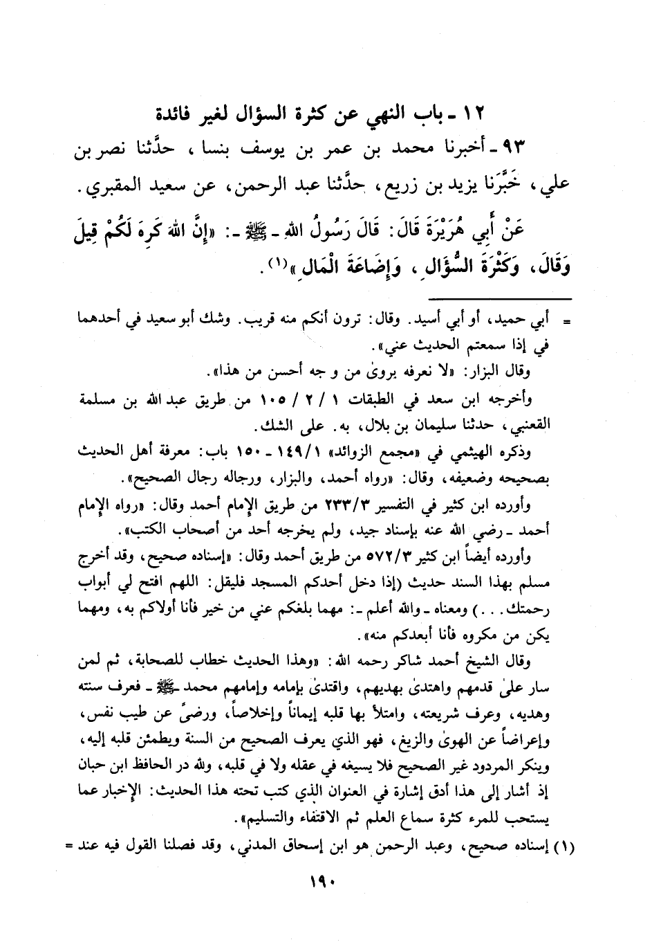 12 - باب النهي عن كثرة السؤال لغير فائدة