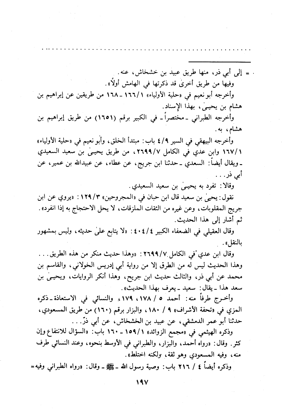 وأخرجه البيهقي في السير 9/ 4 باب: مبتدأ الخلق، وأبو نعيم في "حلية الأولياء" 1/ 167 وابنِ عدي في الكامل 7/ 2699، من طريق يحيى بن سعيد السعيدي - ويقال أيضاً: السعدي- حدثنا ابن جريج، عن عطاء، عن عبيد الله بن عمير، عن أبي ذر ... وقالا: تفرد به يحيى بن سعيد السعيدي. نقول: يحيى بن سعيد قال ابن حبان في "المجروحين" 3/ 129: "يروي عن ابن جريج المقلوبات، وعن غيره من الثقات الملزقات، لا يحل الاحتجاج به إذا انفرد". ثم أشار إلى هذا الحديث.