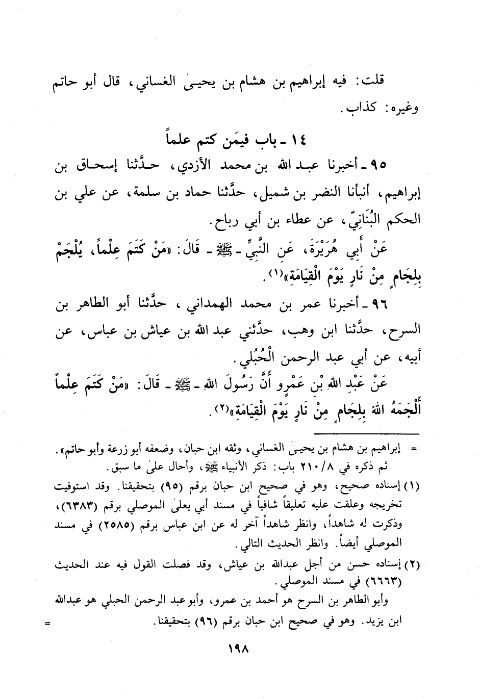 95 - أخبرنا عبد الله بن محمد الأزدي، حدَّثنا إسحاق بن إبراهيم، أنبأنا النضر بن شميل، حدَّثنا حماد بن سلمة، عن علي بن الحكم البُنَانِيّ، عن عطاء بن أبي رباح.