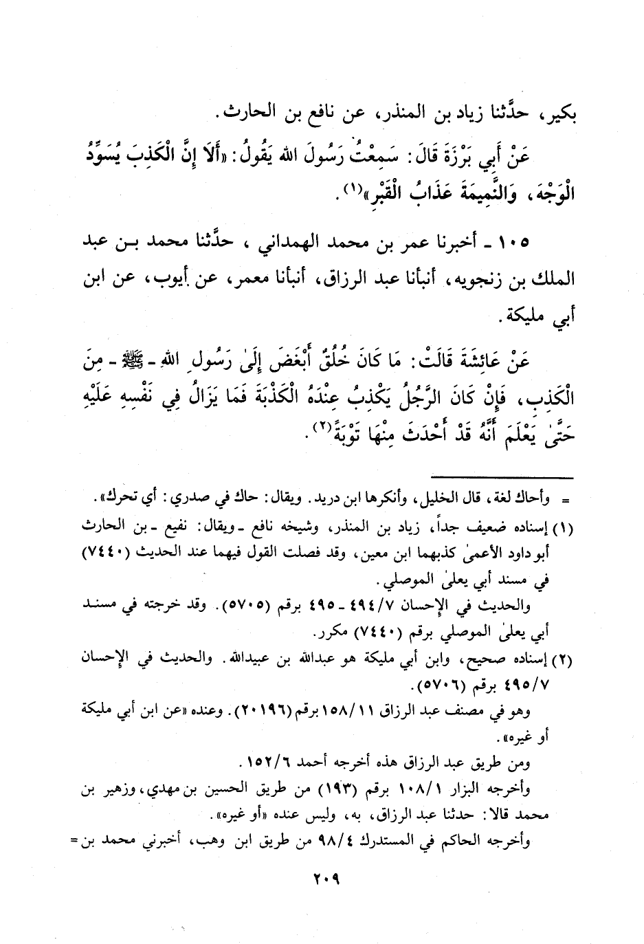 105 - أخبرنا عمر بن محمد الهمداني، حدَّثنا محمد بن عبد الملك بن زنجويه، أنبأنا عبد الرزاق، أنبأنا معمر، عن أيوب، عن ابن أبي مليكة.