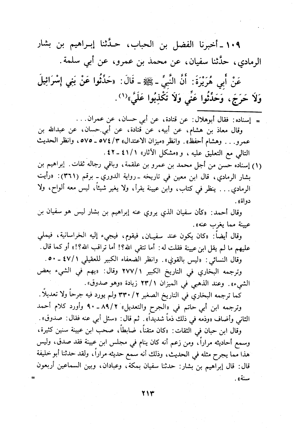 109 - أخبرنا الفضل بن الحباب، حدَثنا إبراهيم بن بشار الرمادي، حدَثنا سفيان، عن محمد بن عمرو، عن أبي سلمة.