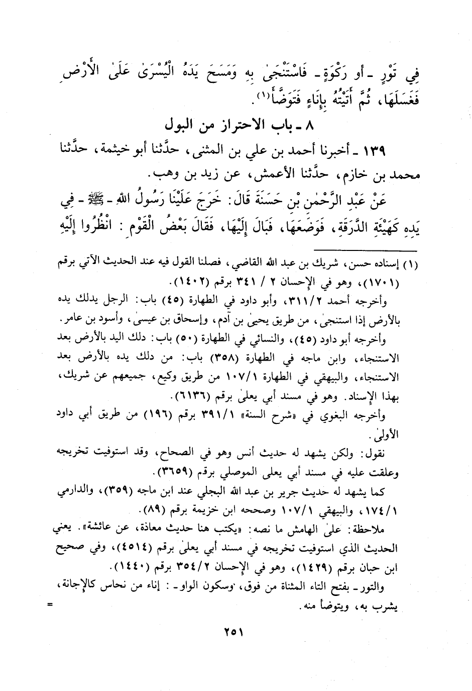 139 - أخبرنا أحمد بن علي بن المثنى، حدَّثنا أبو خيثمة، حدَّثنا محمد بن خازم، حدَّثنا الأعمش، عن زيد بن وهب.