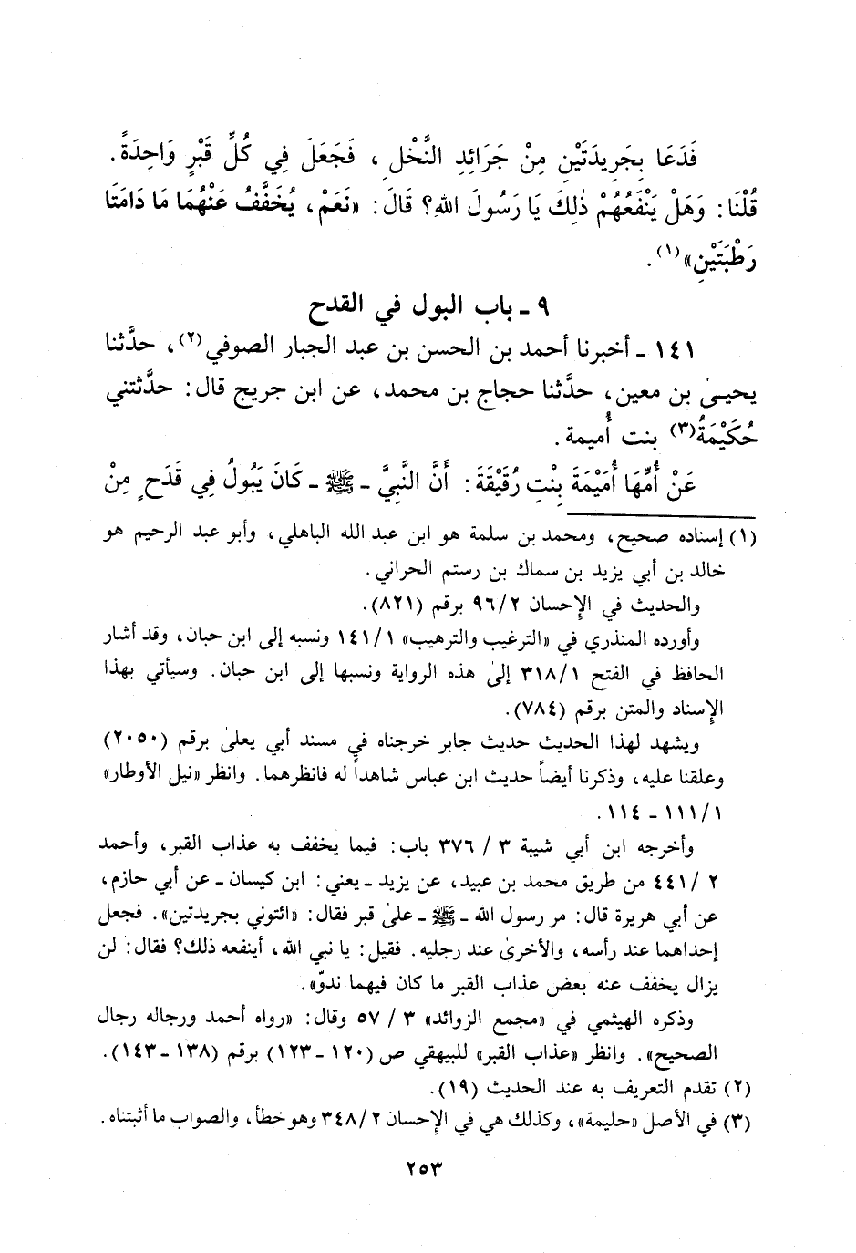 141 - أخبرنا أحمد بن الحسن بن عبد الجبار الصوفي (¬2)، حدَّثنا يحيى بن معين، حدَّثنا حجاج بن محمد، عن ابن جريج قال: حدَّثتني حُكَيْمَةُ (¬3) بنت أميمة.